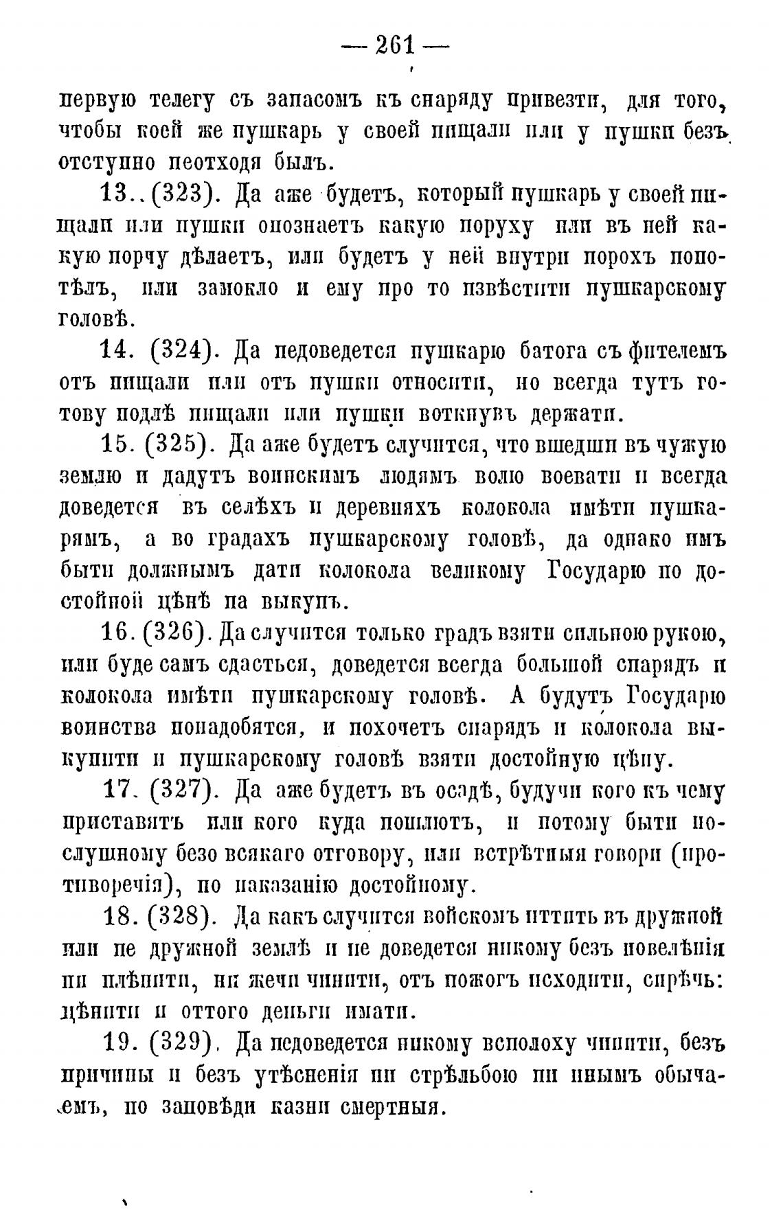 14. (324). Да педоведется пушкарю батога съ фпте.лемъ