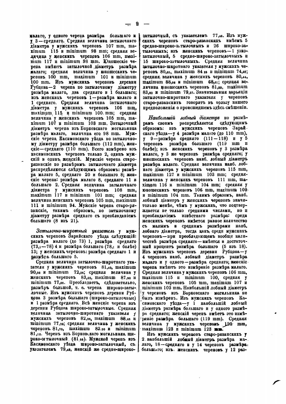 13; у женских•ь череиовъ: разм±ра свнаго 1 и