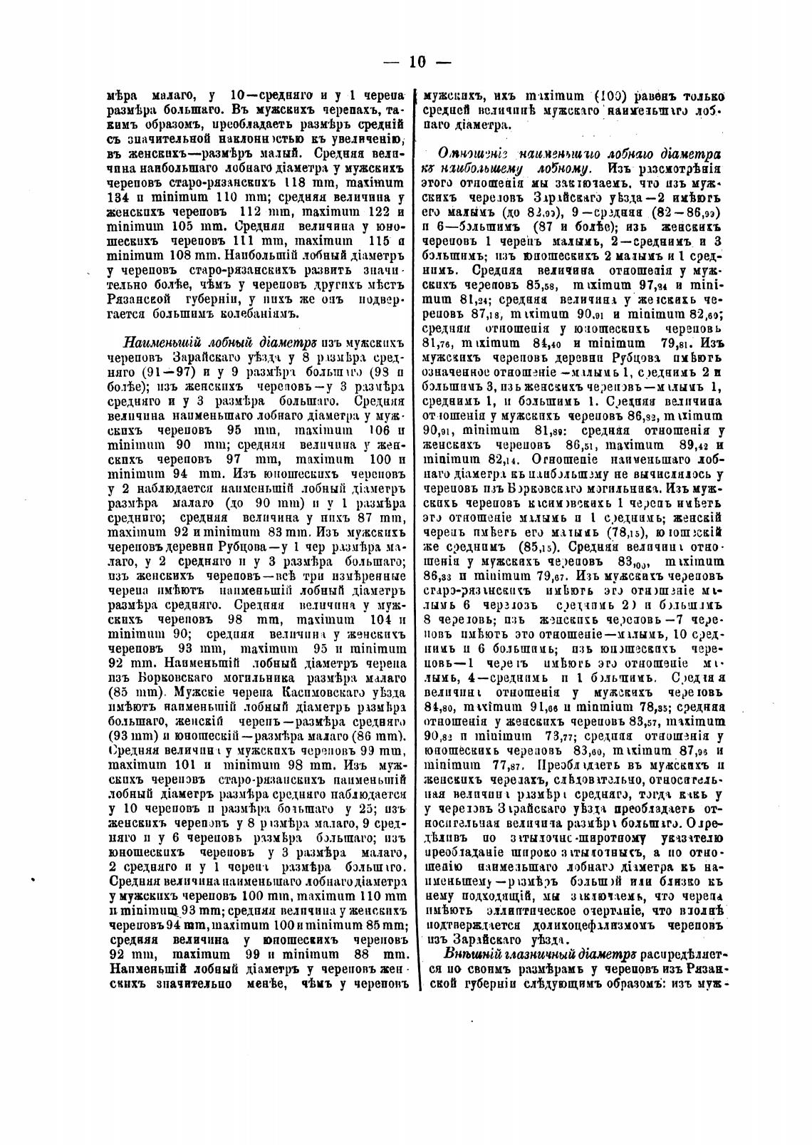 у мужскихъ череповъ 100 тт. maximum 110 тт