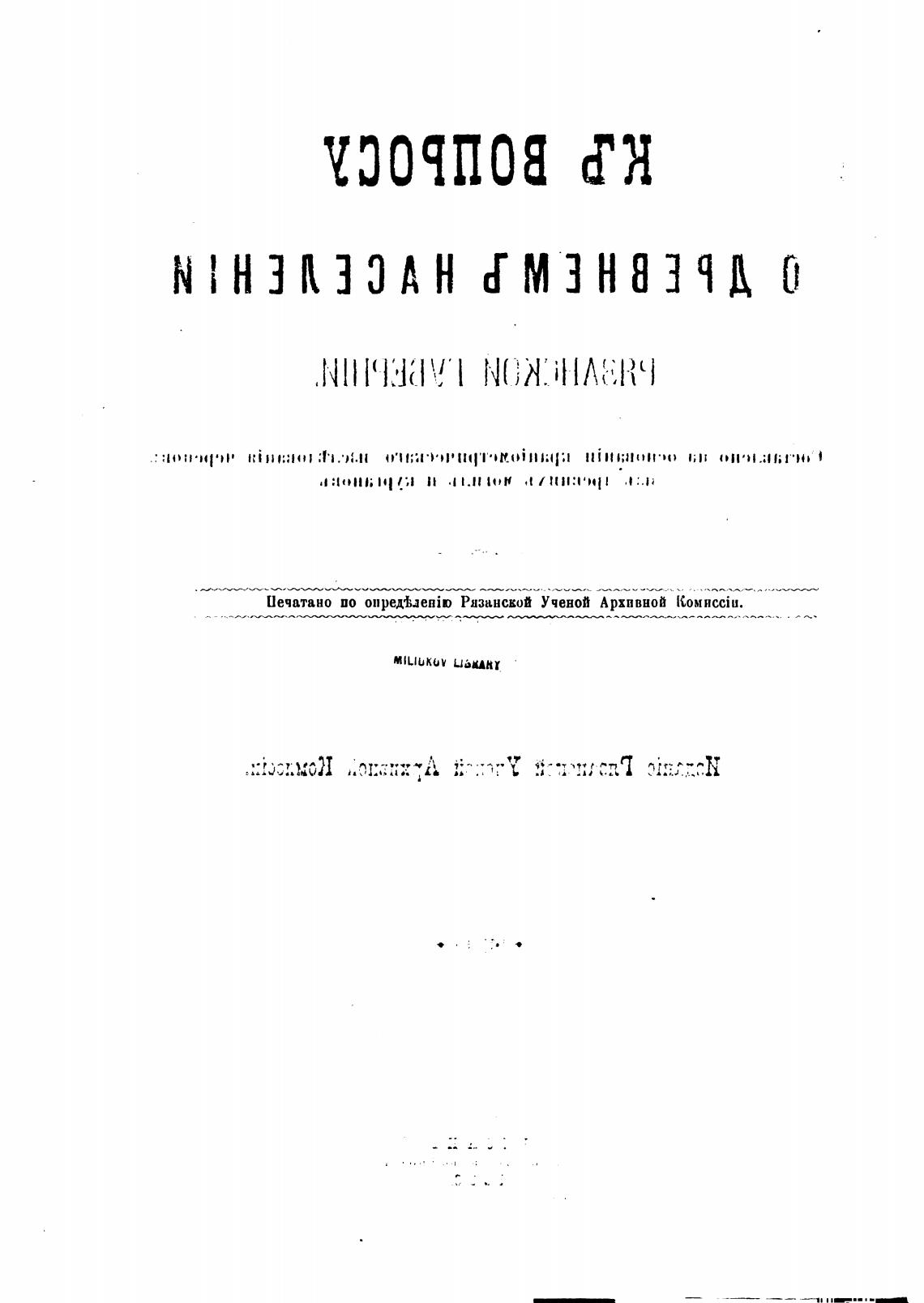 Печатано по Рцзансвой Ученой Архивной Комясспя.