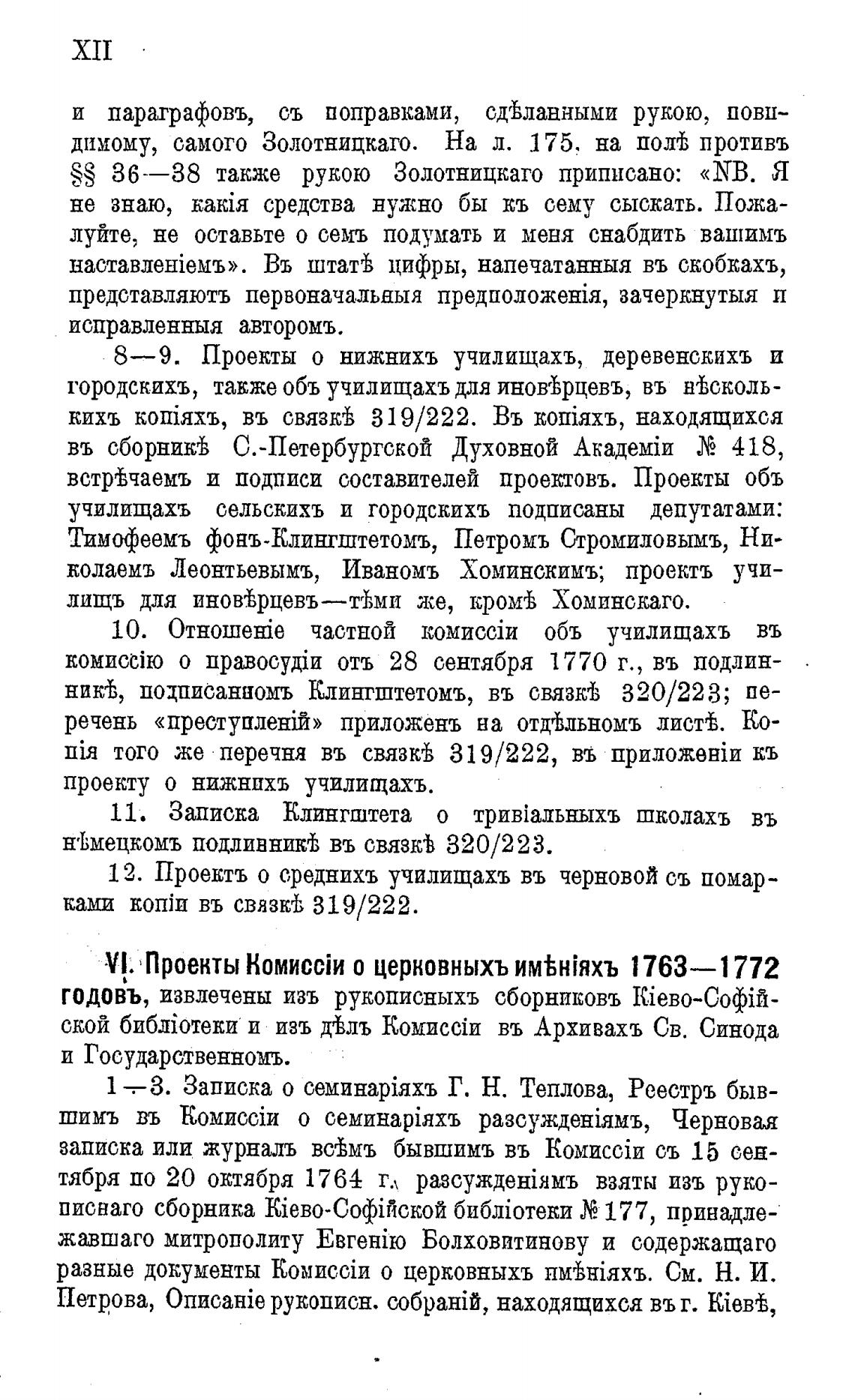 V!. Проекты о церновныхъ 1763—1772