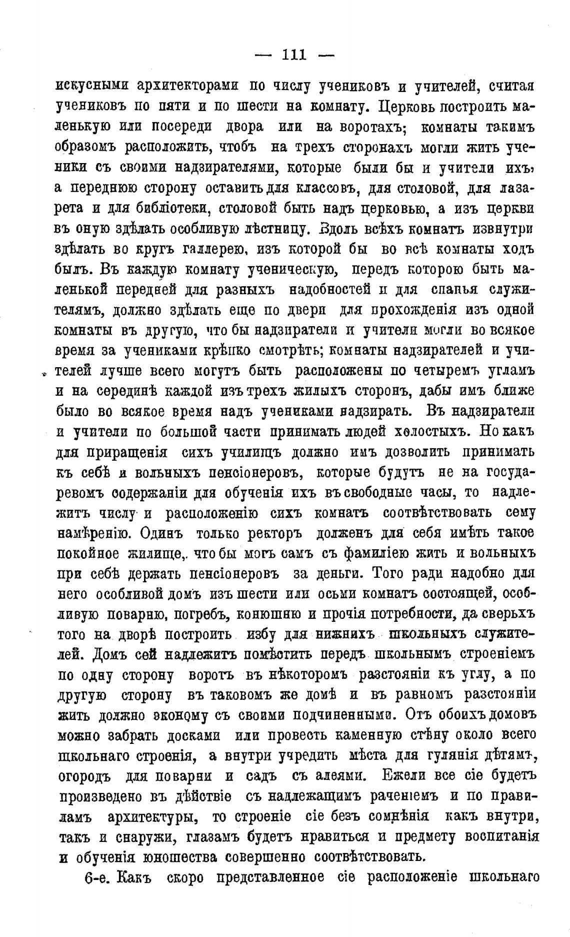 учениковъ по пяти и по шести на вомнату. Церковь построить ма-