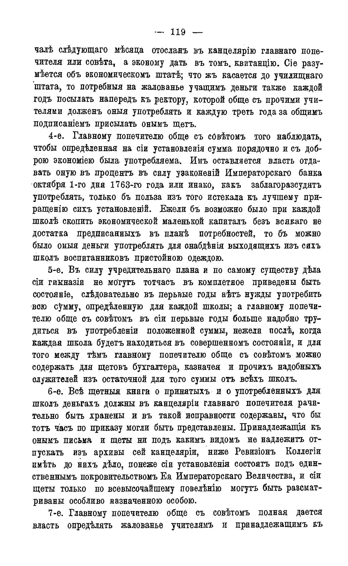 4-е. Главному попечителю обще съ совћтомъ того наблюдать,