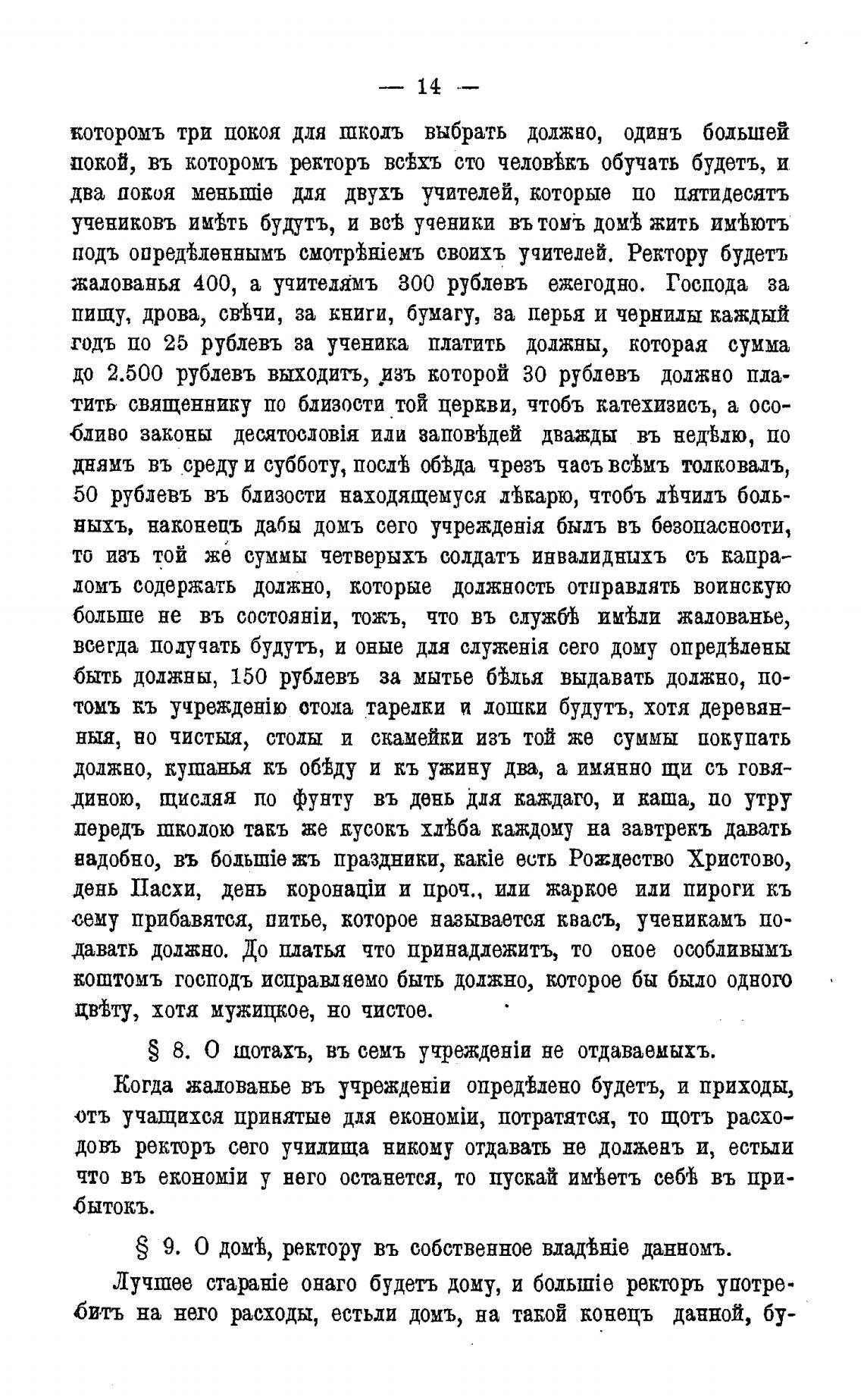 жалованья 400, а учитеимъ 300 рублевъ ежегодно. Господа за
