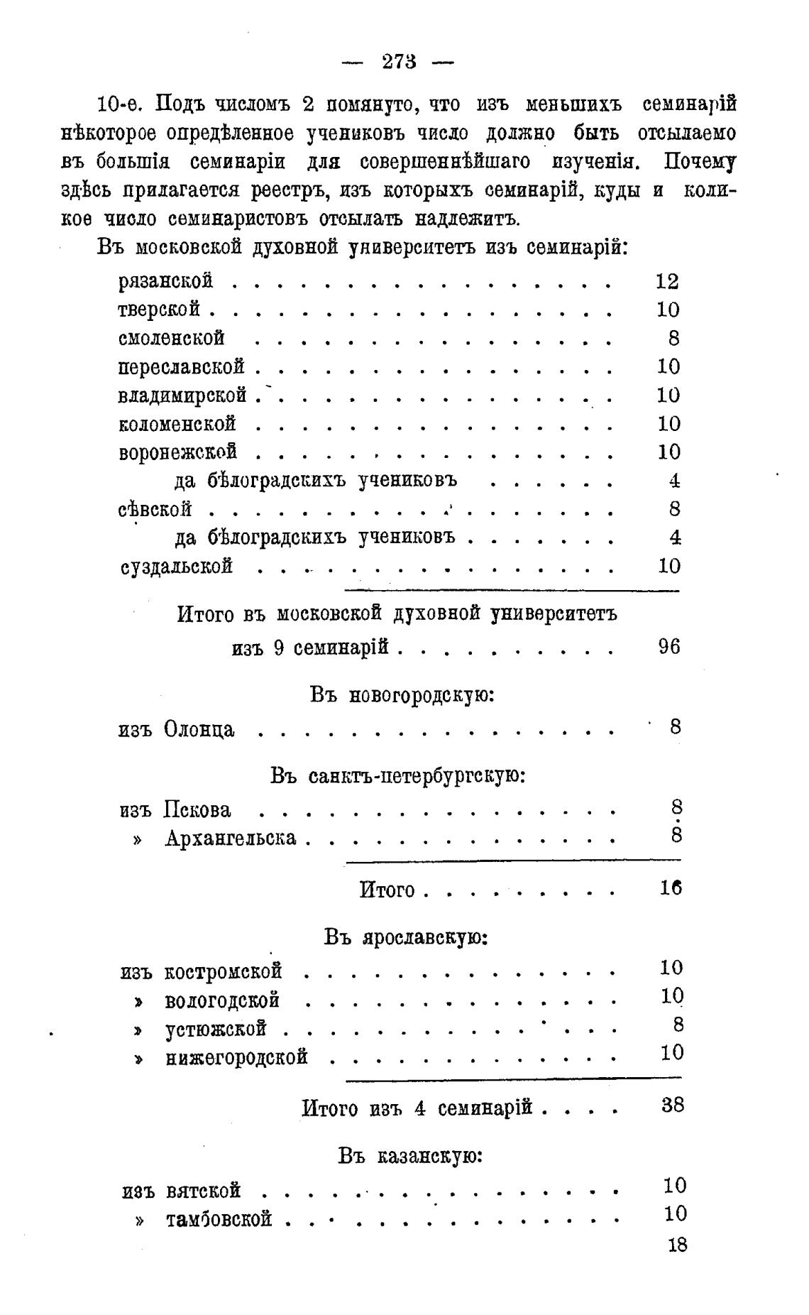 кое чиодо семинаристовъ отсылать наддежитъ.