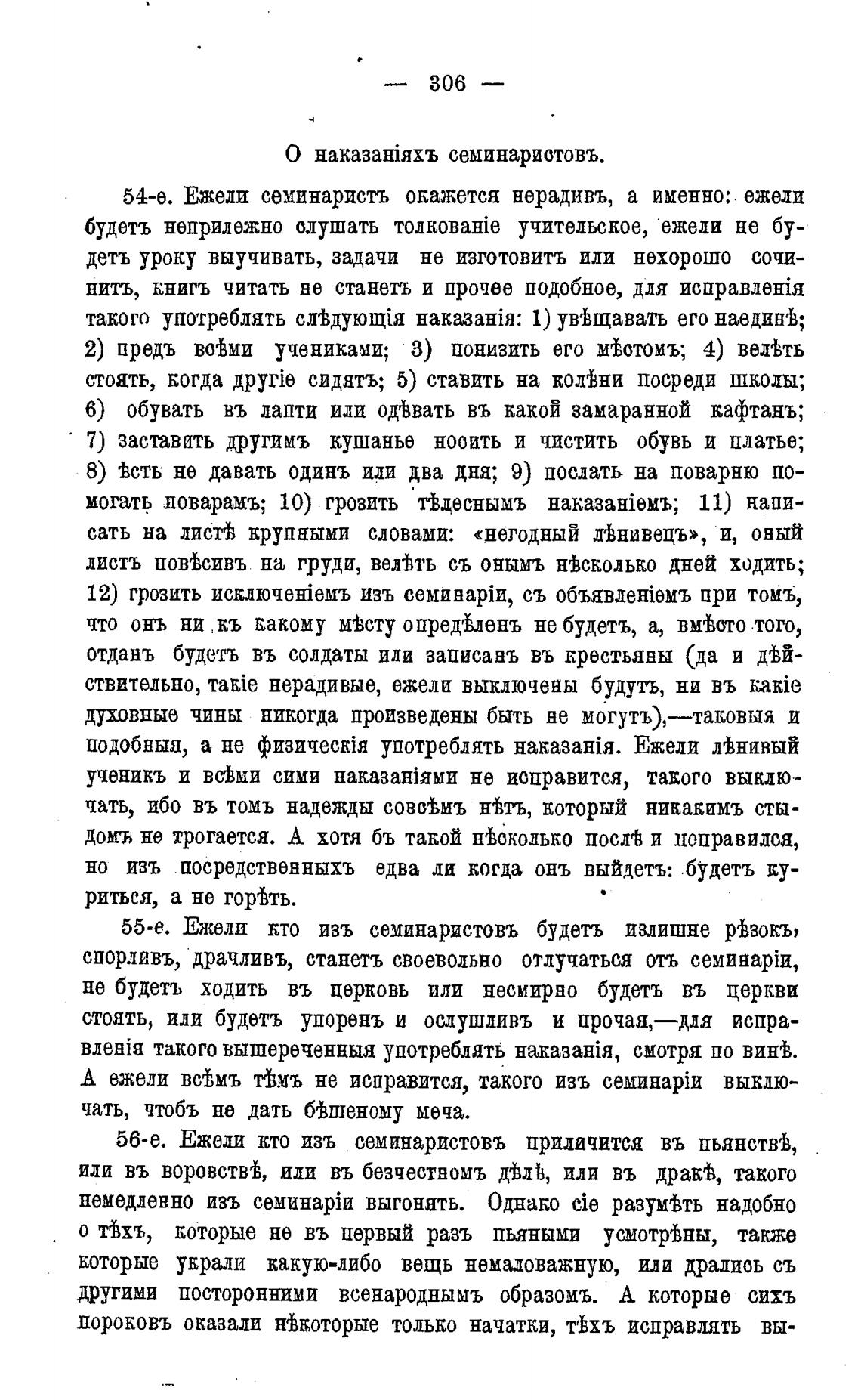 55-е. Ежели кто изъ семинаристовъ будетъ излишне рђзокъ