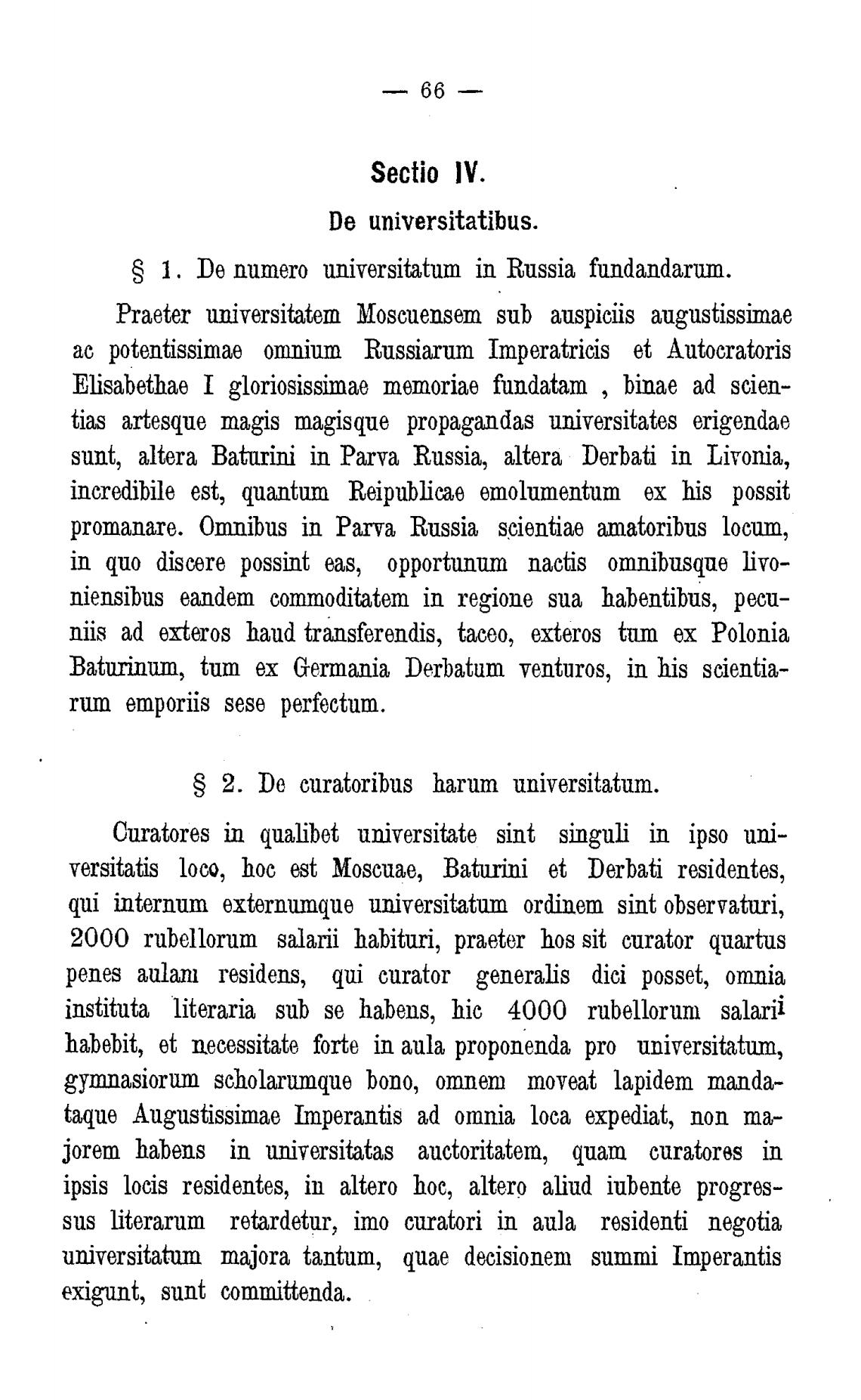 S 1. De numero universitatum in Russia fundandarum.