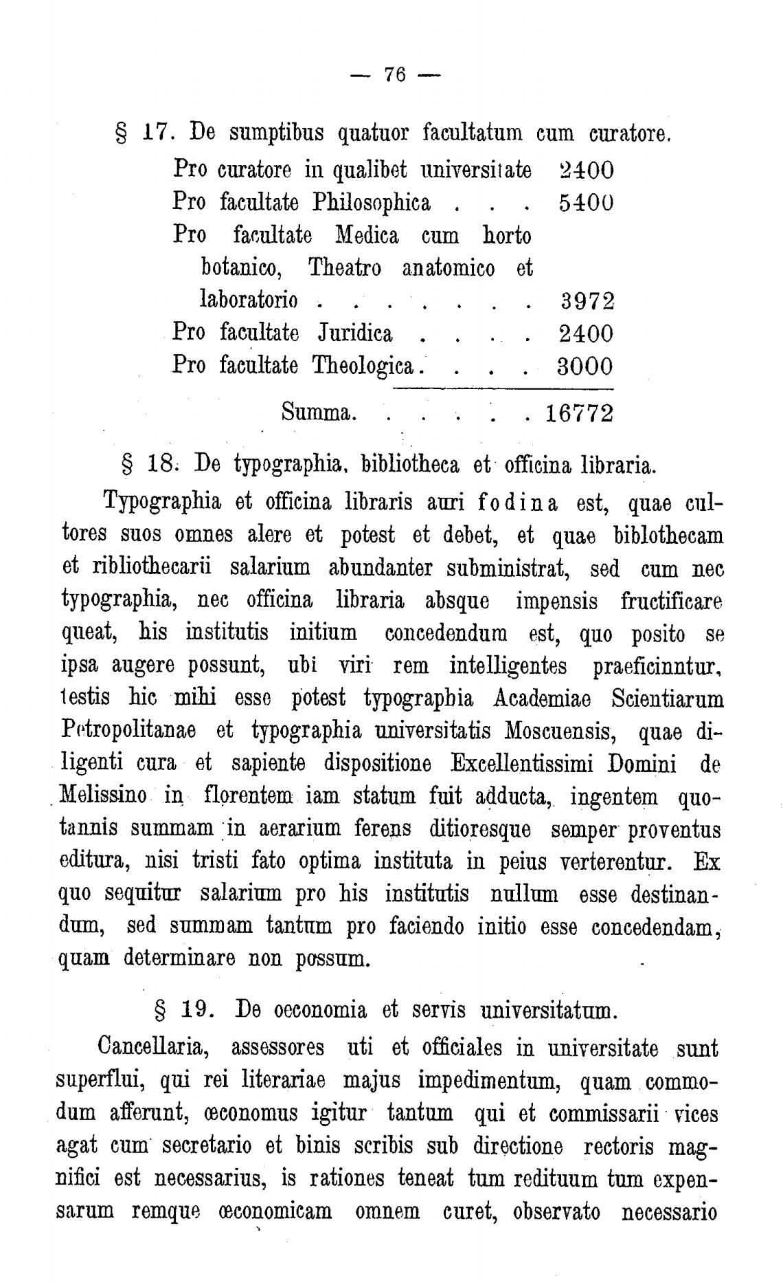 S 17. Пе sumptibus quatuor facultatum сит curatore.