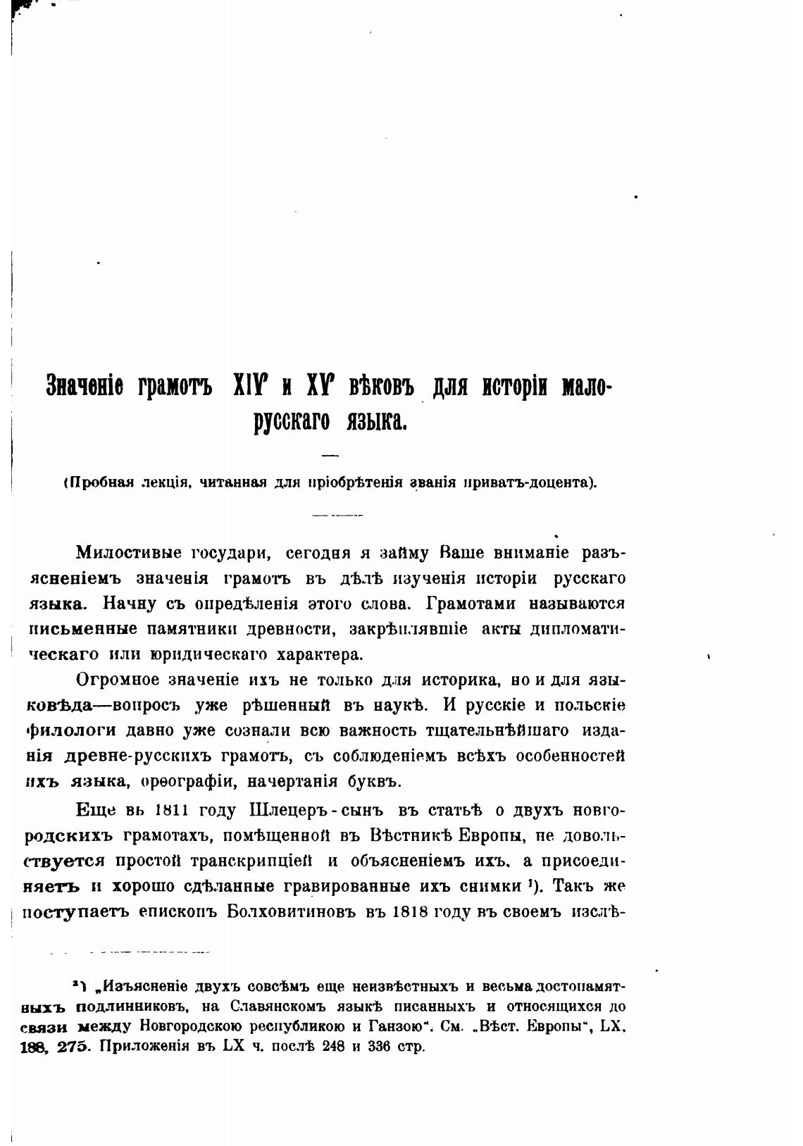 (Пробная читанная для аванЈя приватъ-доцента).