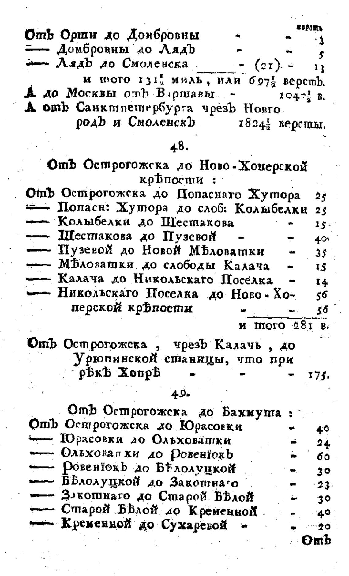 ОТЪ Ост рогожска , чрезЪ Калачь , до