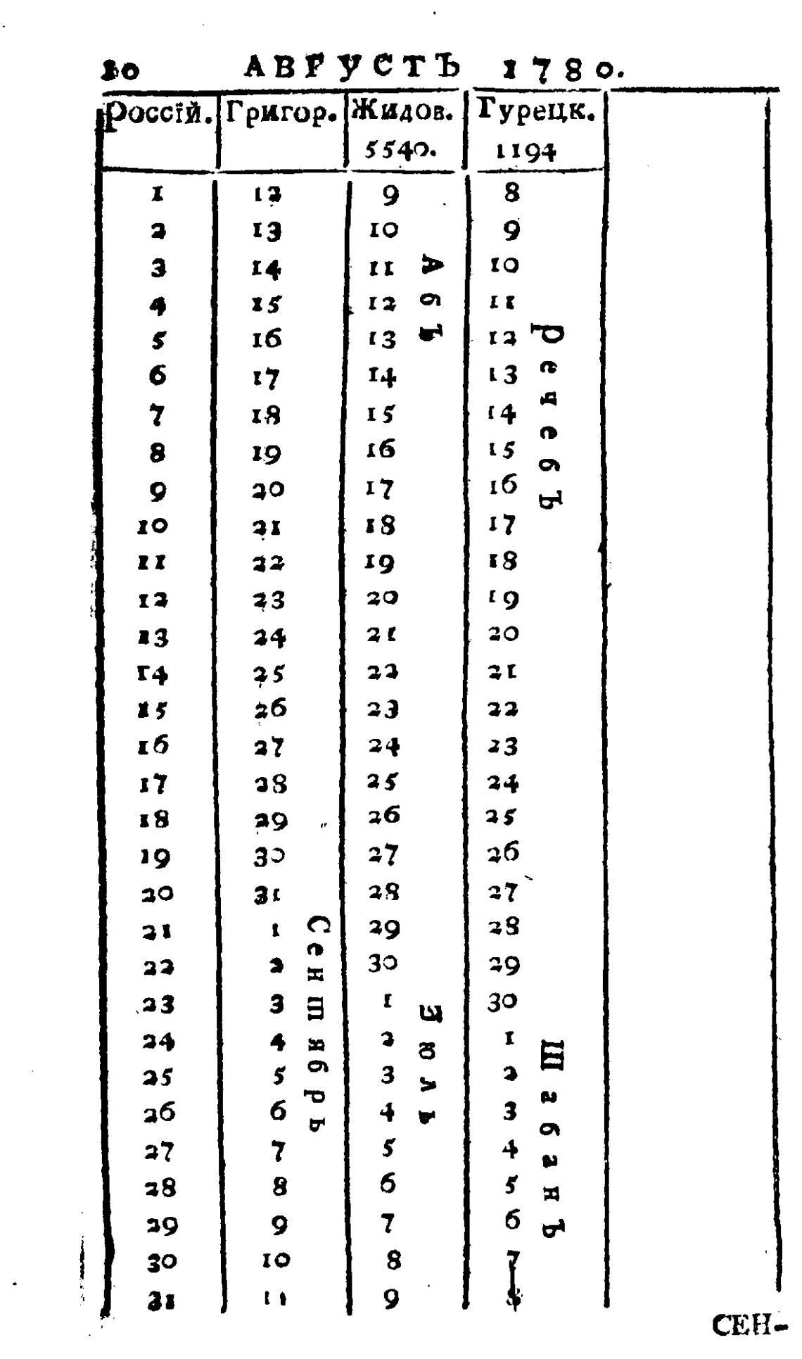 Любопытный месяцеслов на 1780 год, который есть высокосный, с показанием российских, григорианских, жидовских и турецких лет и месяцов. - Рубан В. Г.