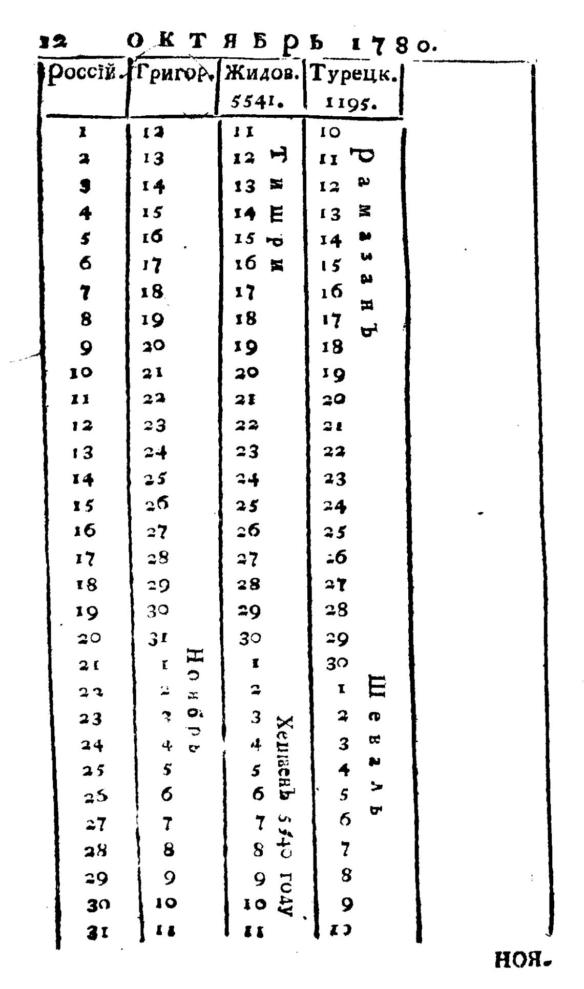 Любопытный месяцеслов на 1780 год, который есть высокосный, с показанием российских, григорианских, жидовских и турецких лет и месяцов. - Рубан В. Г.