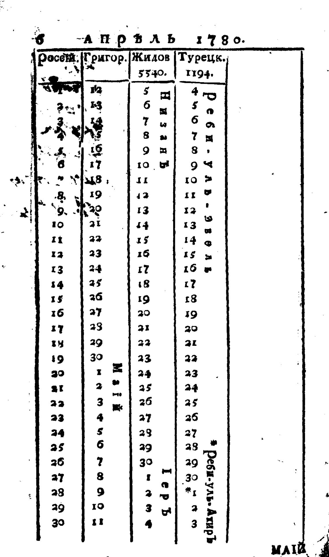 Любопытный месяцеслов на 1780 год, который есть высокосный, с показанием российских, григорианских, жидовских и турецких лет и месяцов. - Рубан В. Г.