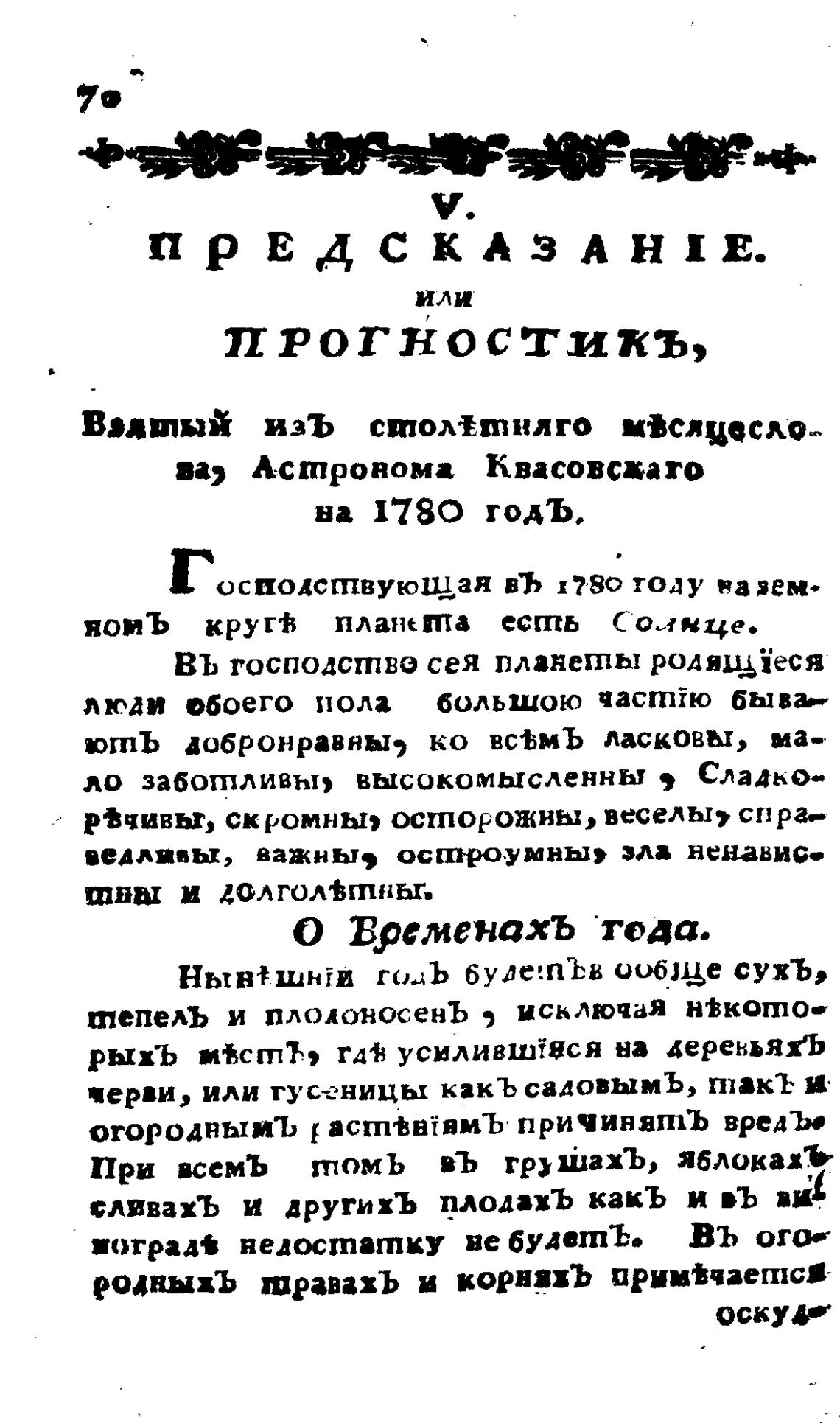 О Временахъ года.