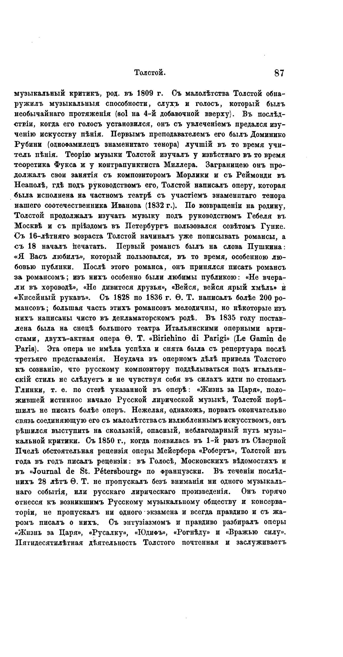 музыкальный критикъ, род. въ 1809 г. Съ малолжства Толстой обна-