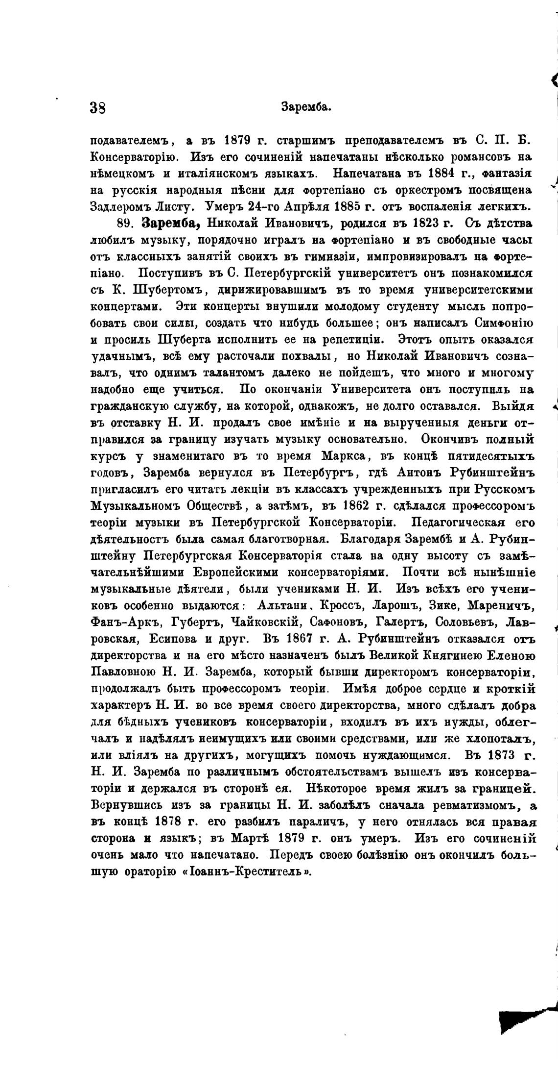 Н. И. Заремба по различнымъ обстоятельствамъ вышелъ ивъ консерва—