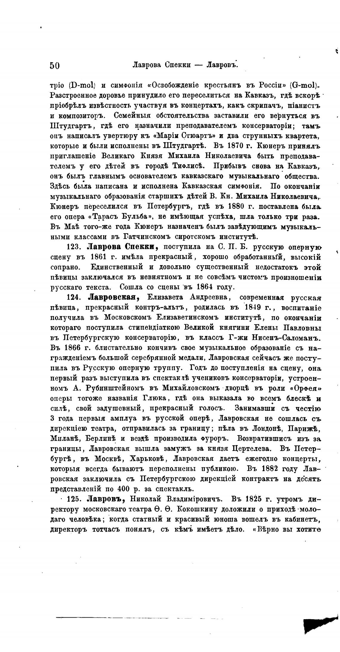 123. Лаврова Спевки, поступила на С. П. Б. русскую оперную