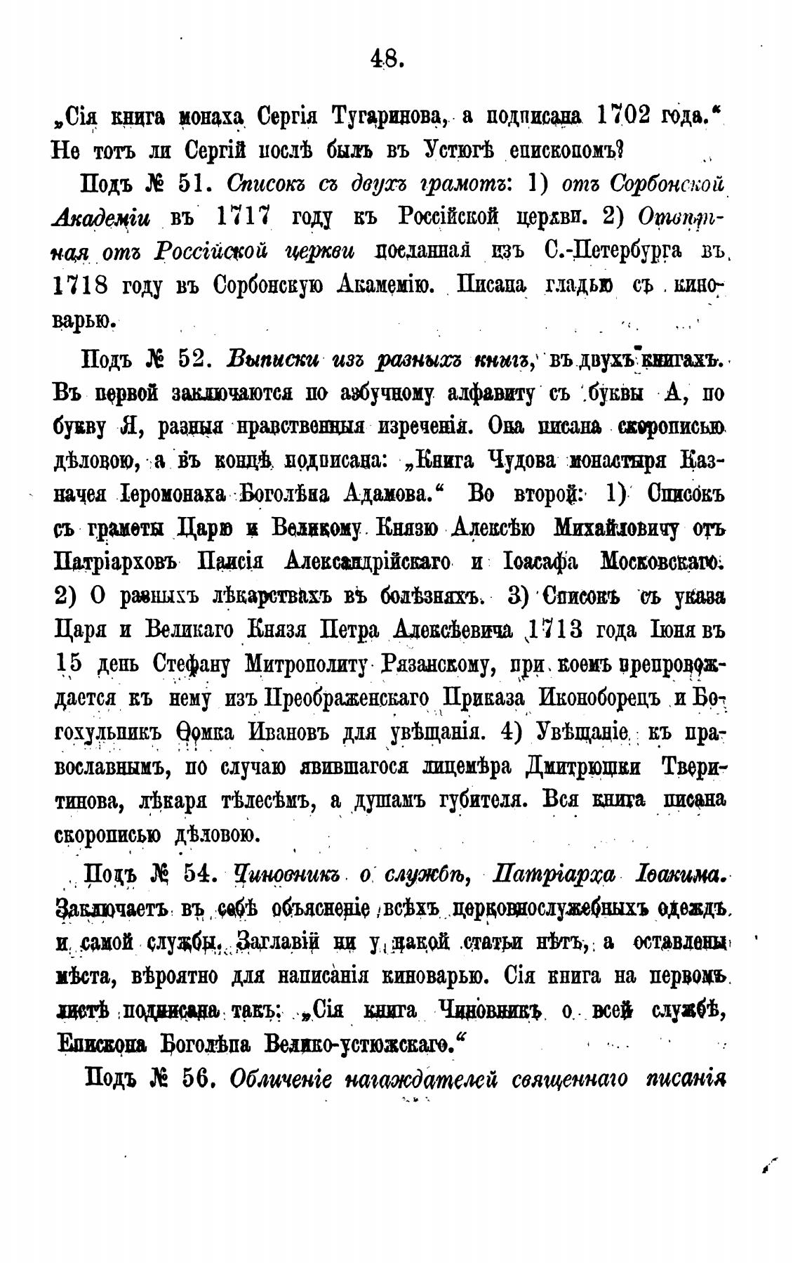 Подъ 51. Списокь двуп грамотб: 1) отб Сорбонской