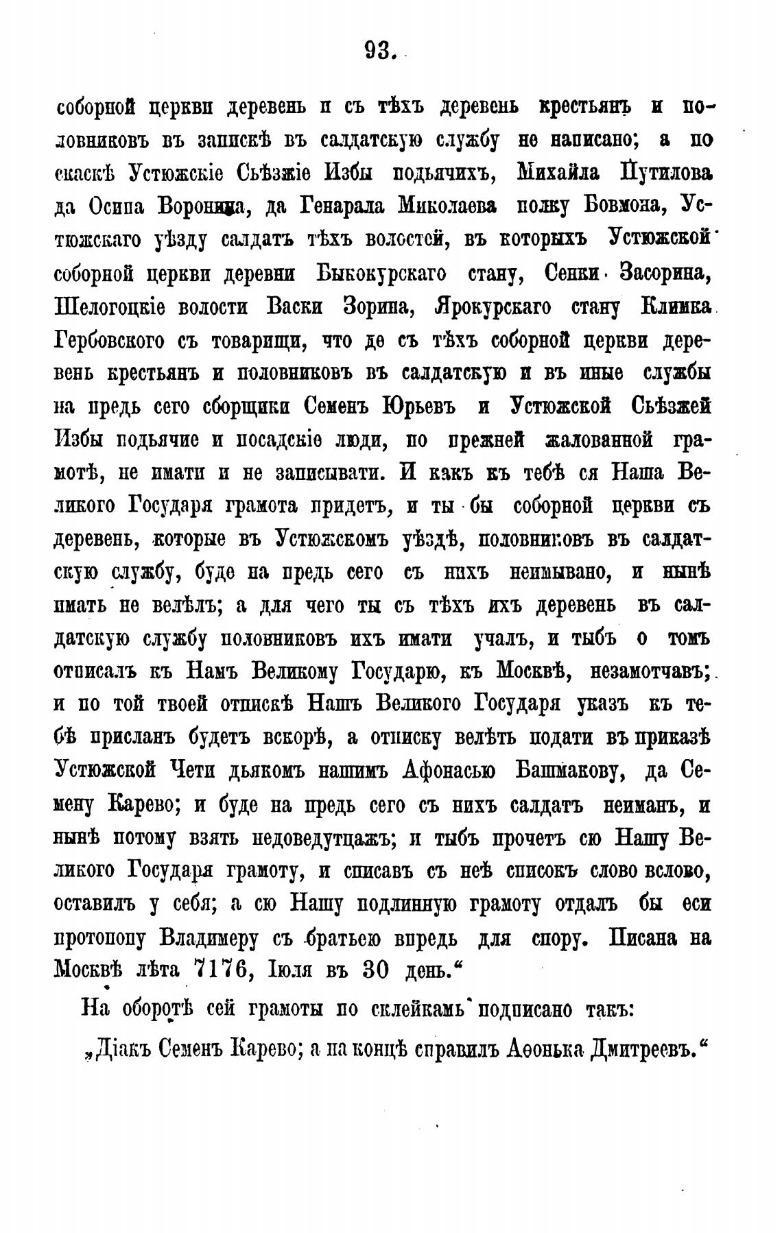 Устюжской Чети дьякомъ нашимъ Афонасью Башмакову, да Се-