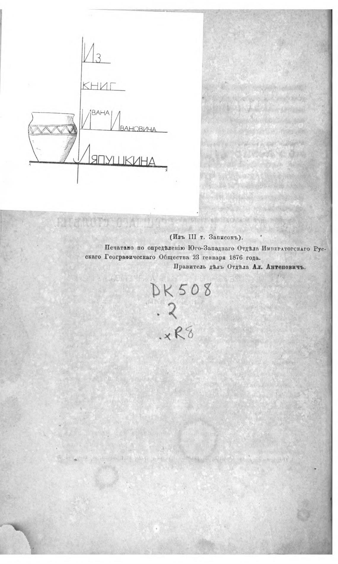 Печатано по onpeOzeHio Юго-Западнаго Отдтв.та ИМПЕРАТОРСКАГО Рус-
