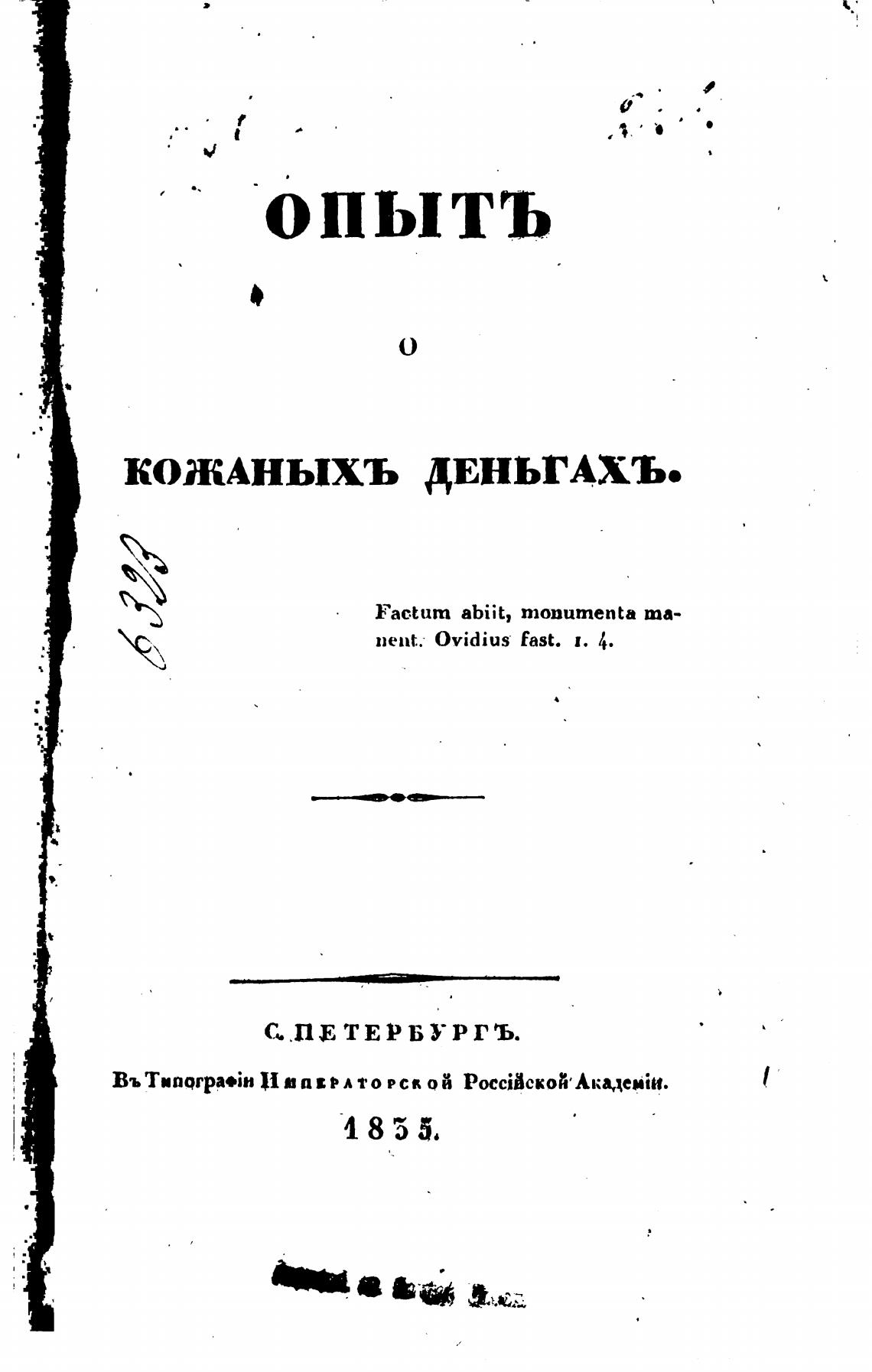 КОЖАНЫХЪ ДЕНЬГАХЪ.