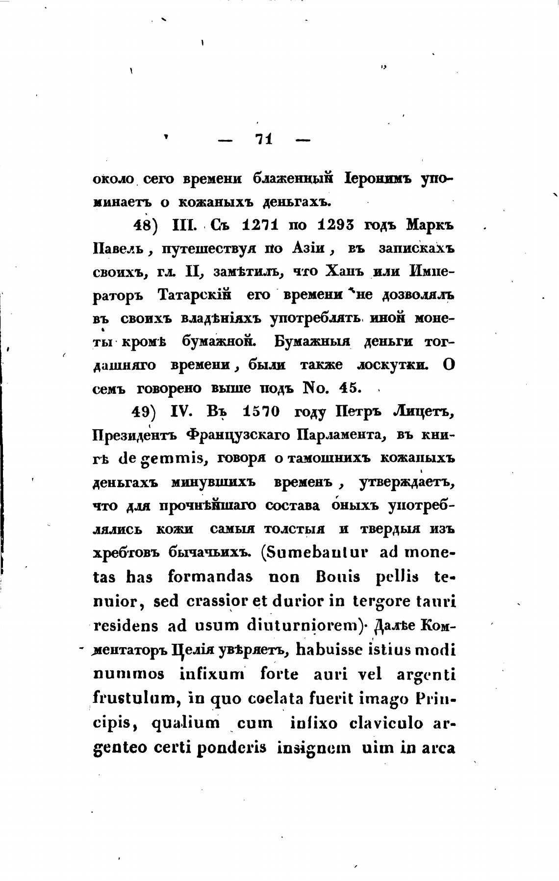 минаеть о кожаныхъ деньгахъ.
