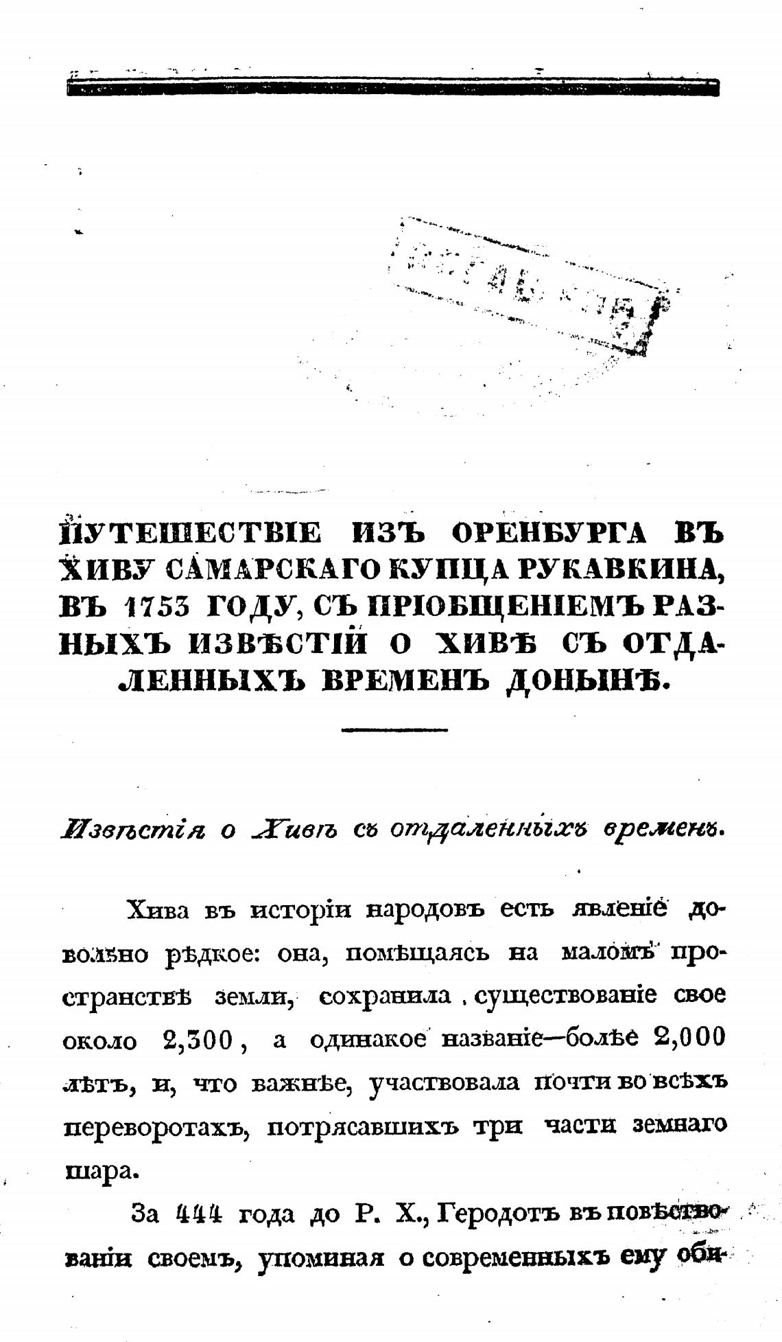ЙУТЕШЕСТВIЕ ИЗЪ ОРЕНБУРГА ВЪ