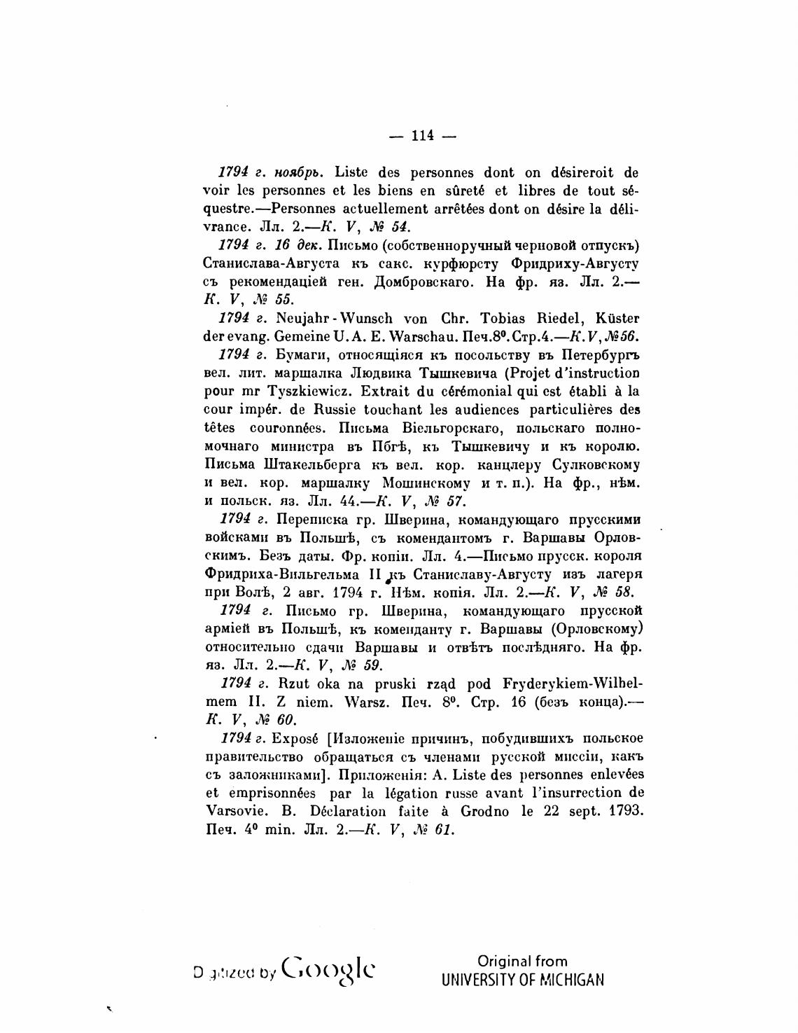при Вол•Ь, 2 авг. 1794 г. Н•Ьм. Лл. 2.—К. У, Л; 58.