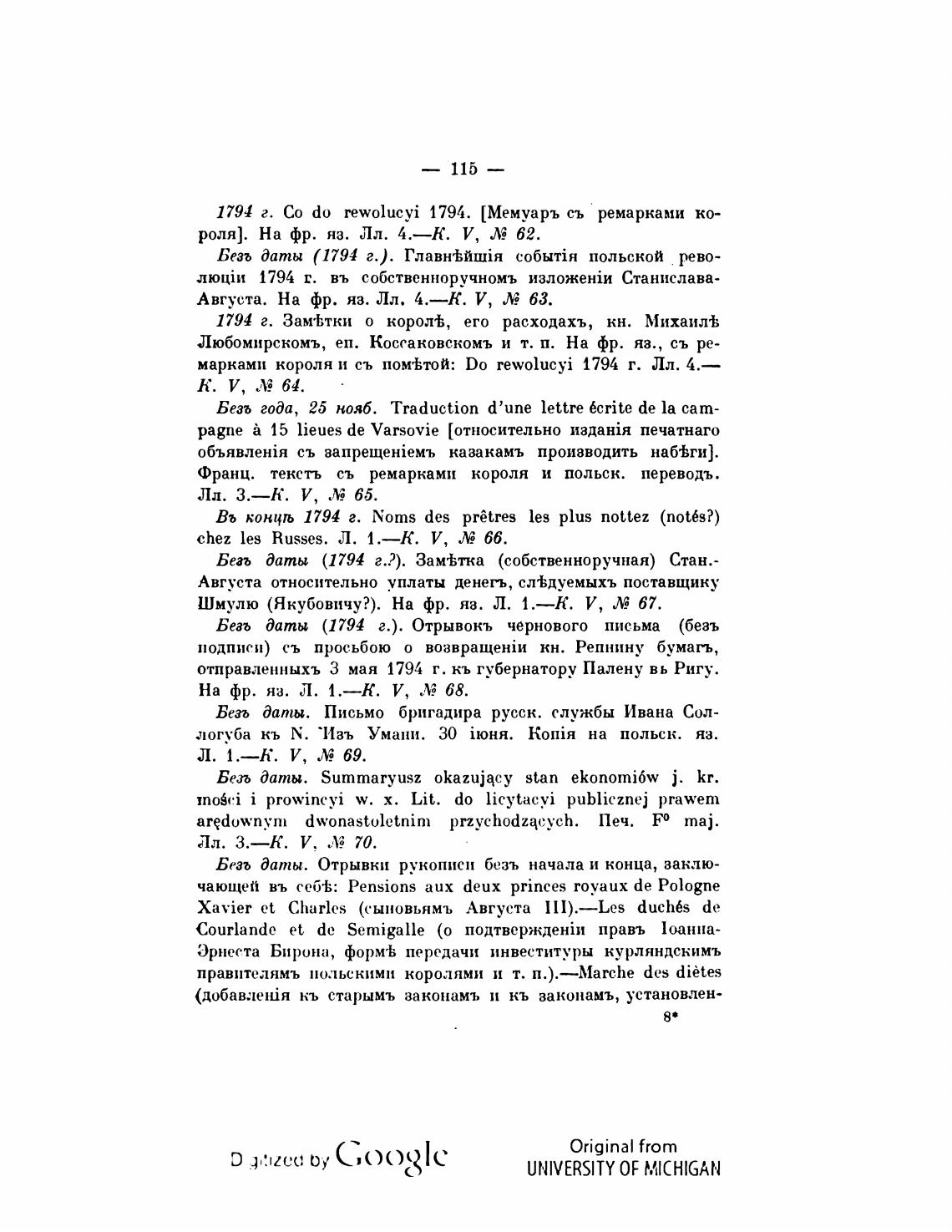 1794 г. Со do rewolucyi 1794. [Мемуаръ съ ремарками ко-