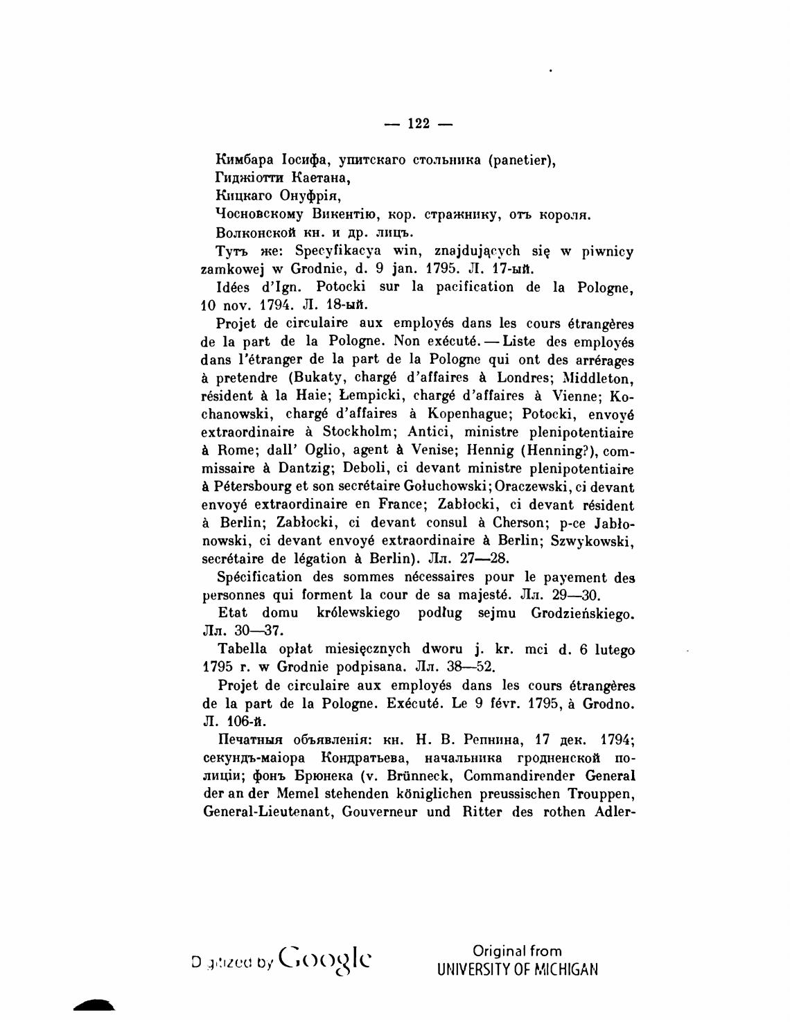 de la part de la Pologne. Non ex6cut6. —Liste des employ6s