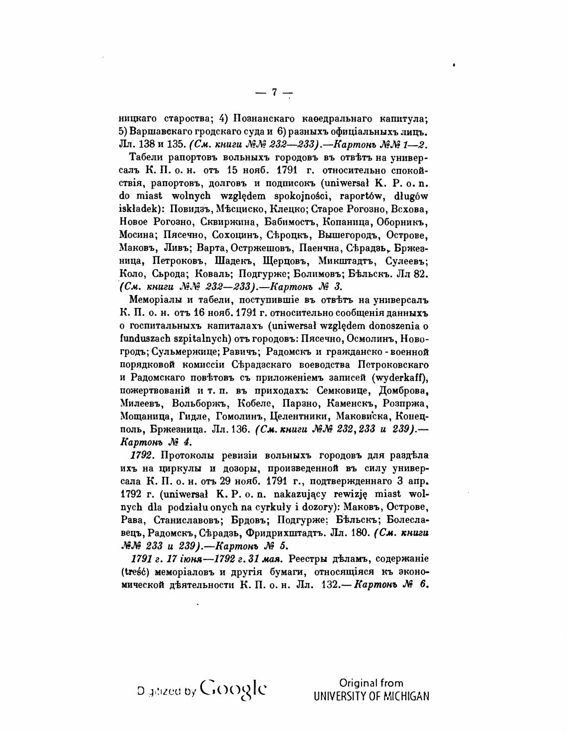 1792 г. (uniwersal К. Р. о. п. nakazujqcy rewizje miast wol-