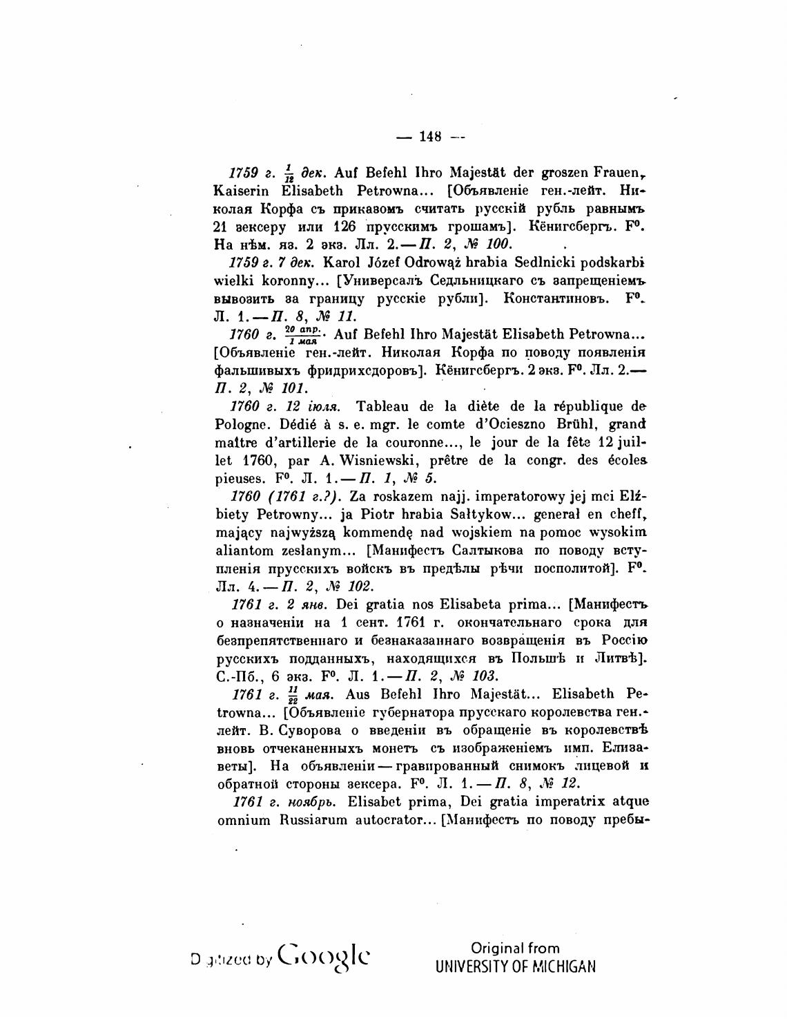1760 (1761 Za roskazem пајј. imperatorowy јеј mci Eli-