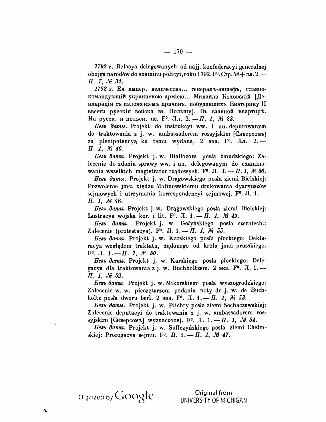 1792 г. Relacya delegowanych od пајј. konfederacyi generalnej