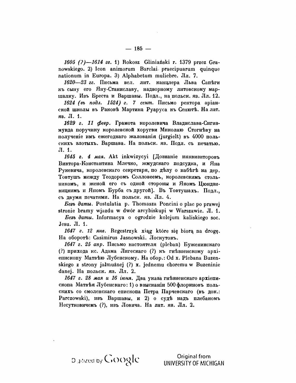 1605 гг. 1) Rokosz Gliniahski т. 1379 przez Gra-