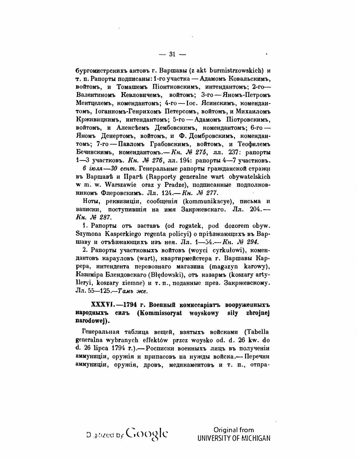 XXXVI.—1794 г. Военный kouccapia•o вооруженныхъ