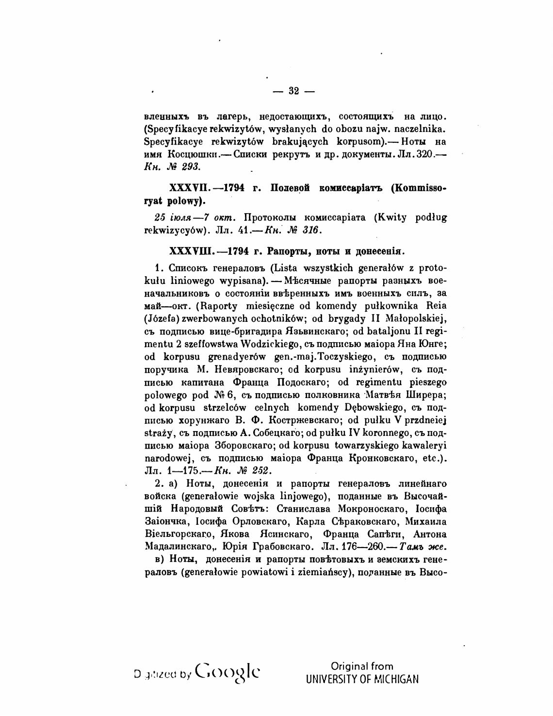 XXXVIII. —1794 г. Рапорты, ноты и
