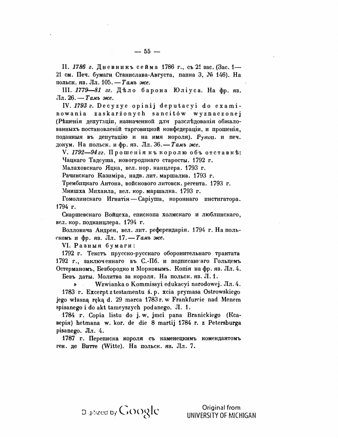 докум. На польск. и фр. яз. Лл. 36.— Тамь же.