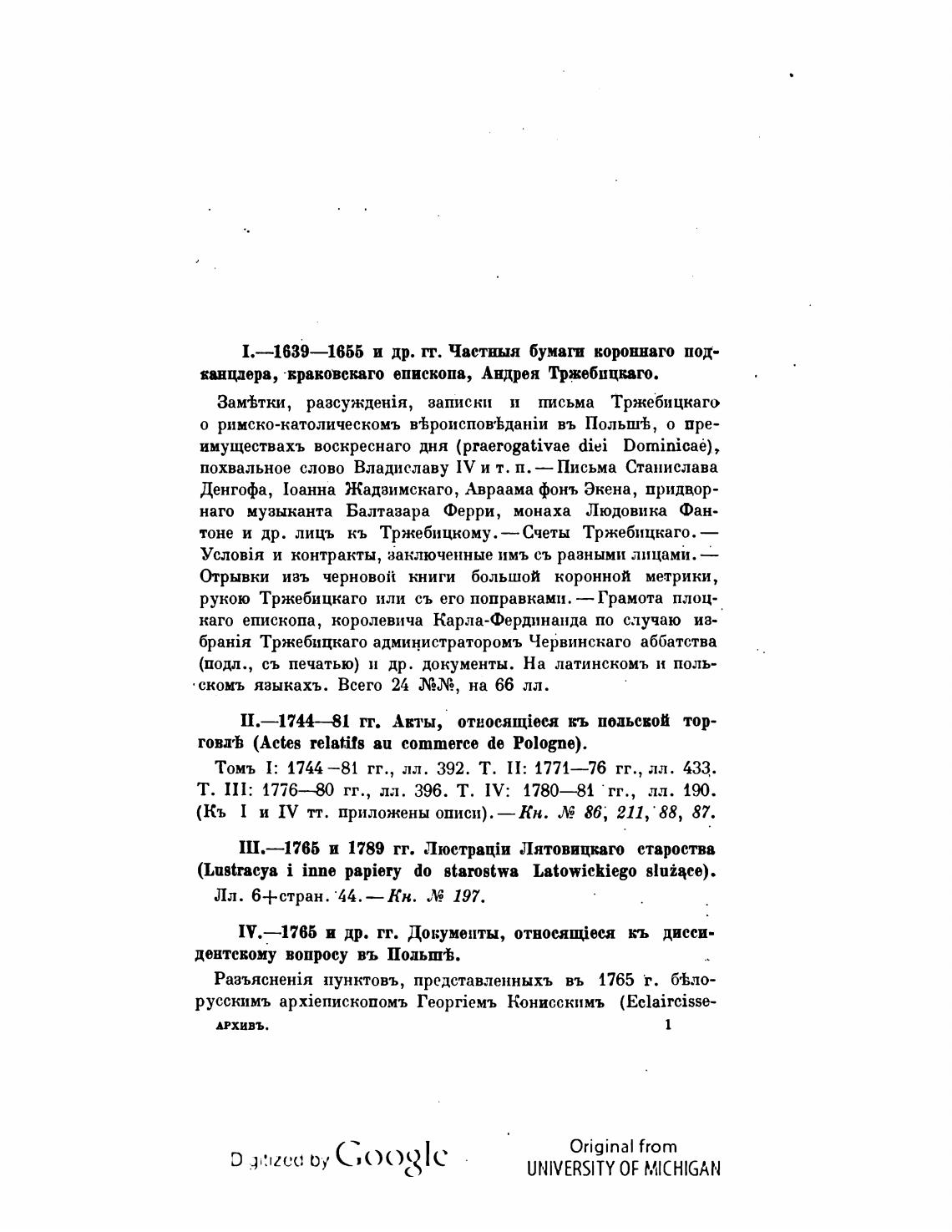 (подл., съ печатью) и др. документы. На латинскомъ и поль-