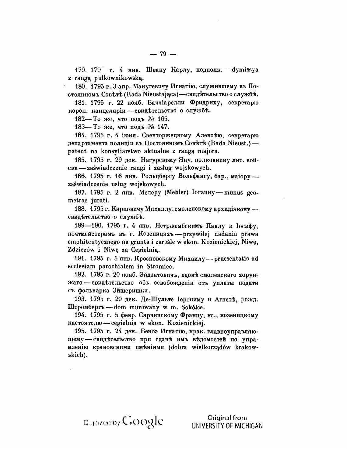 186. 1795 г. 16 янв. Рольцбергу Вольфангу, бар. , Maiopy—
