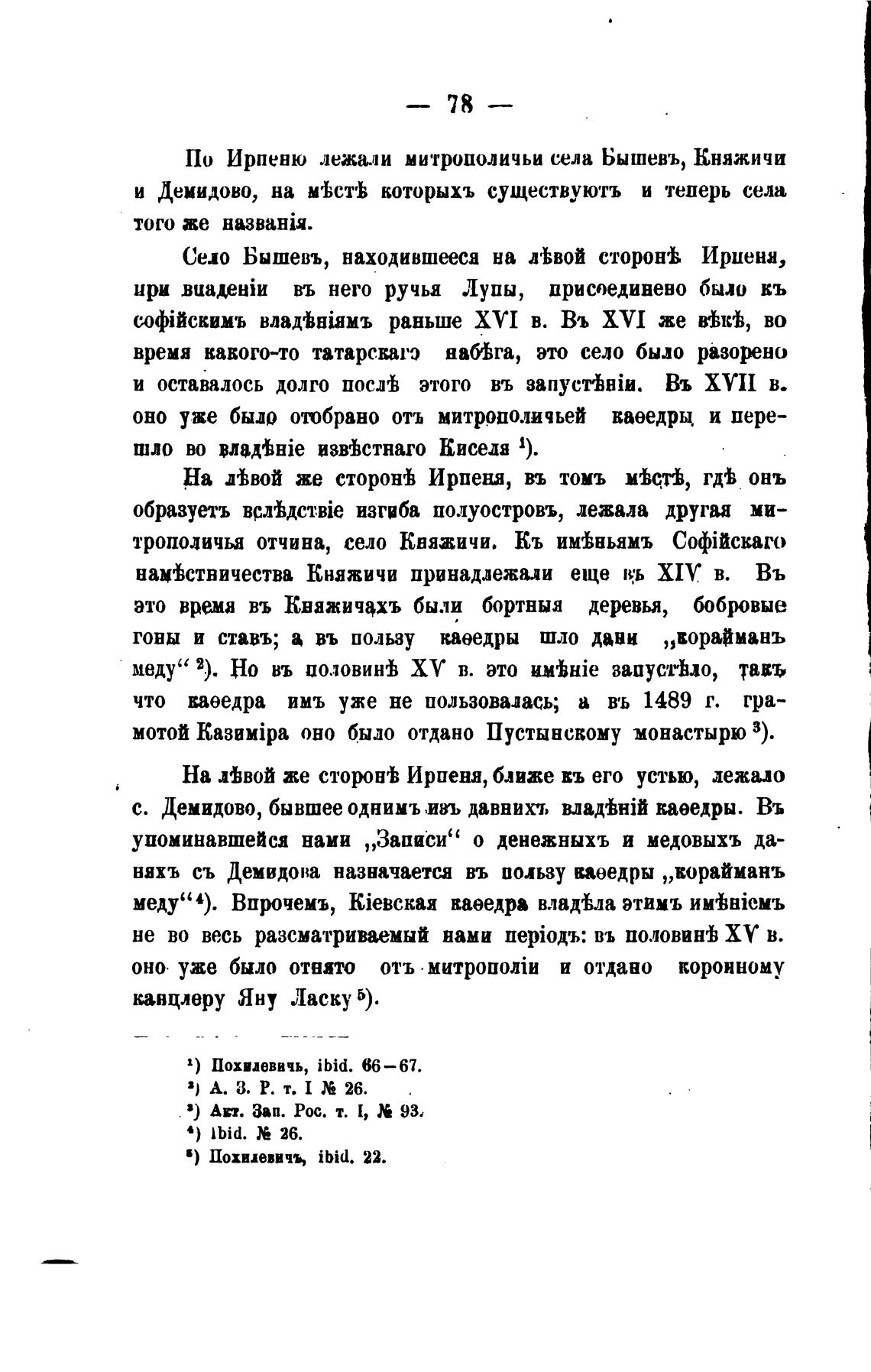 По Ирпеню лежали митрополичьи села Бышевъ, Княжичи