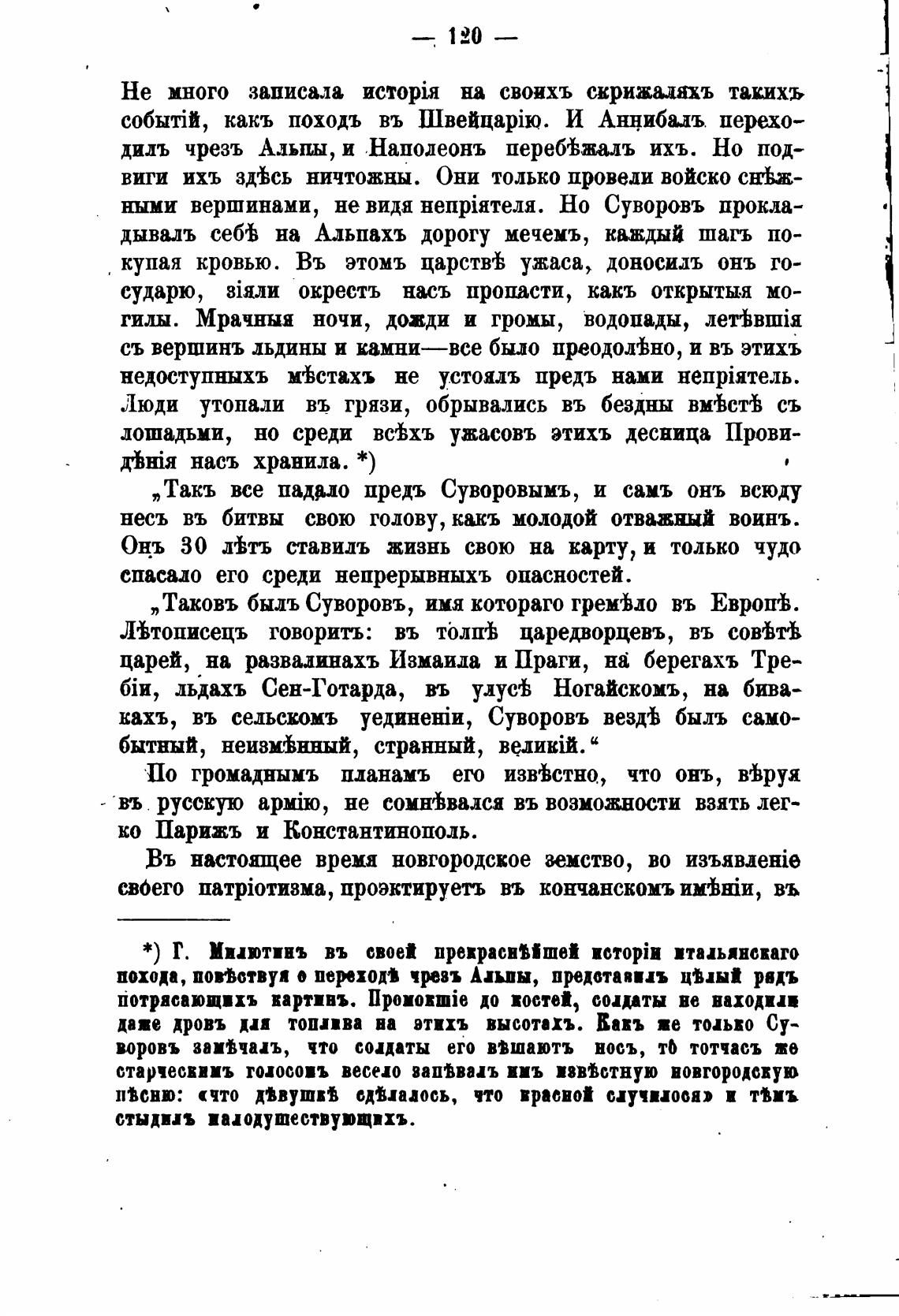 дывалъ себ'Ь на Альпахъ дорогу мечемъ, каждый шагъ по-
