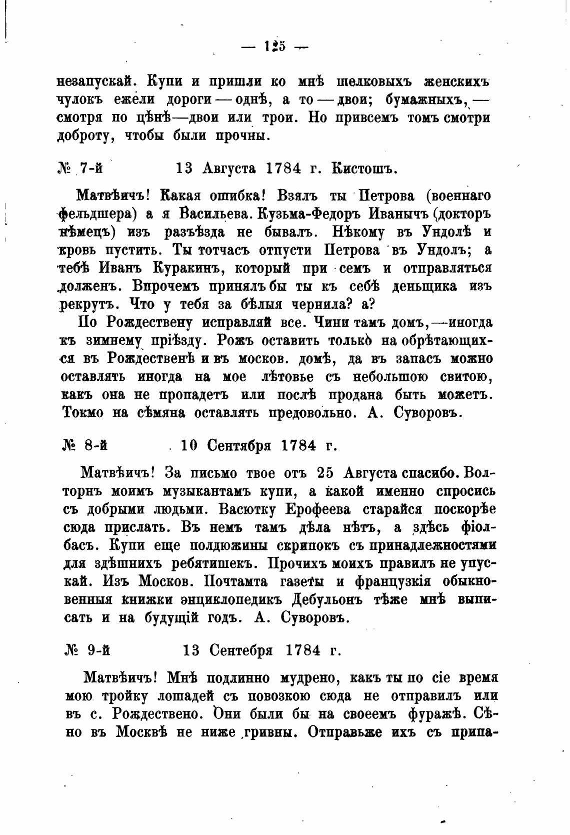 Токмо на ймяна оставлять предовольно. А. Суворовъ.