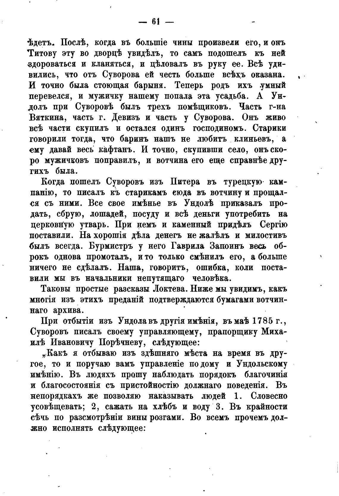 Суворовъ писалъ своему управляющему, прапорщику Миха-