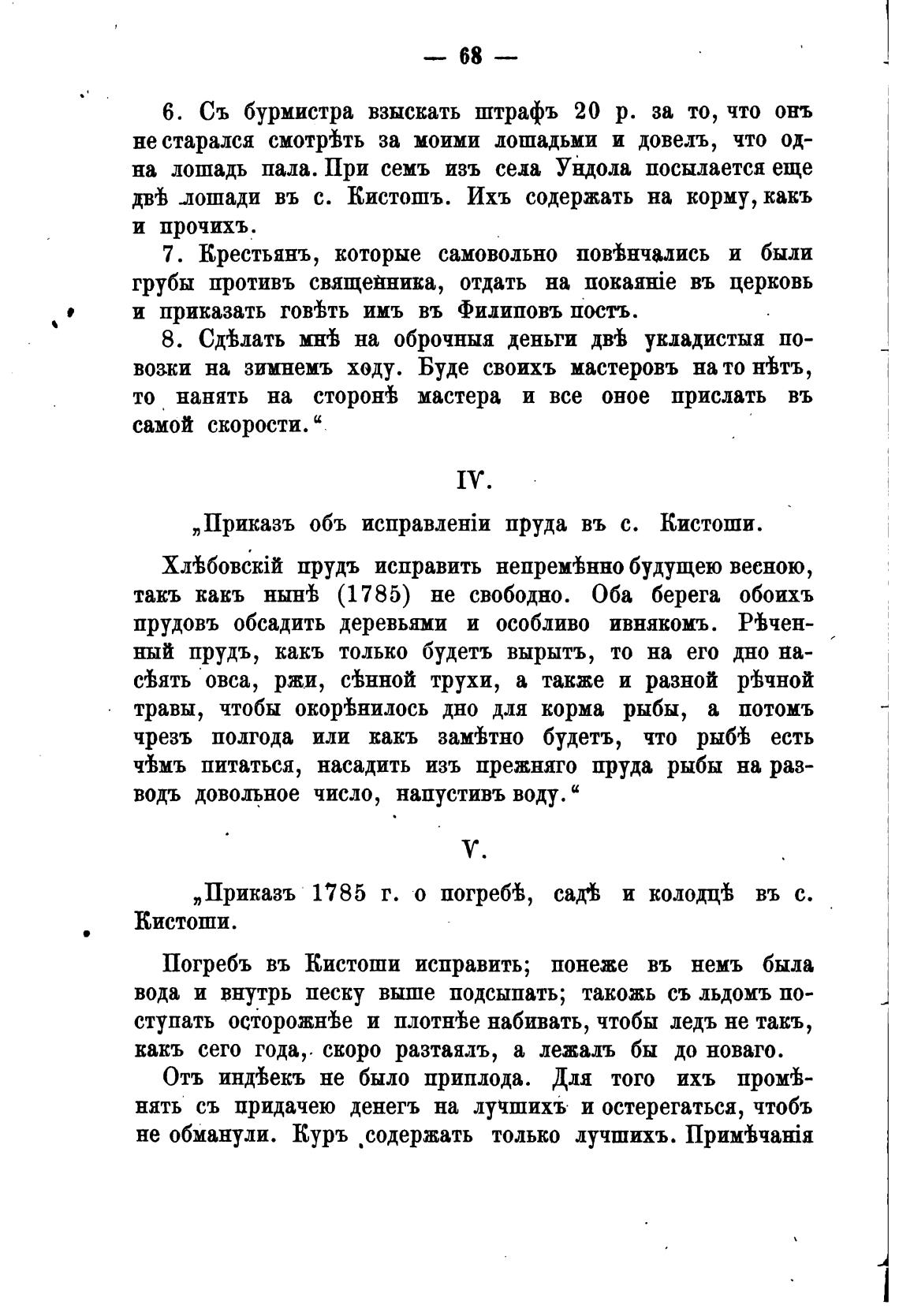 „Приказъ 1785 г. о погреб±, сад•ь и колодтф въ с.