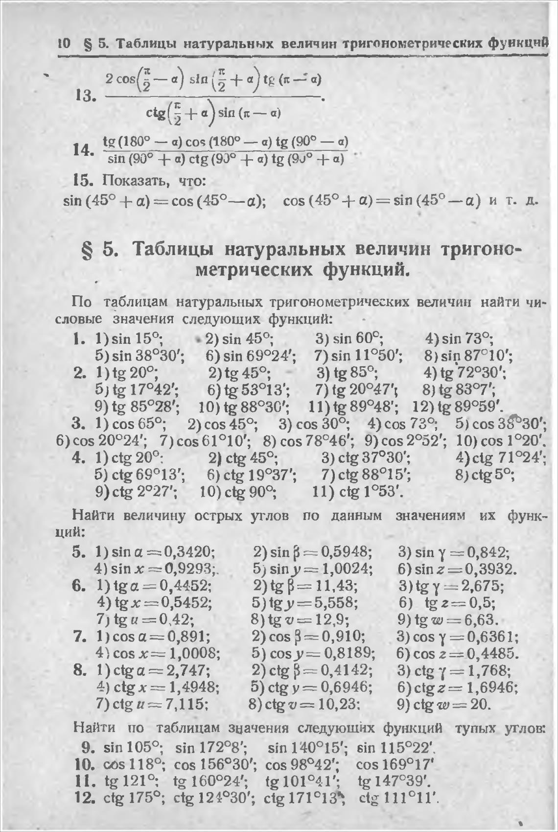 S 5. Таблицы натуральных величин тригоно-