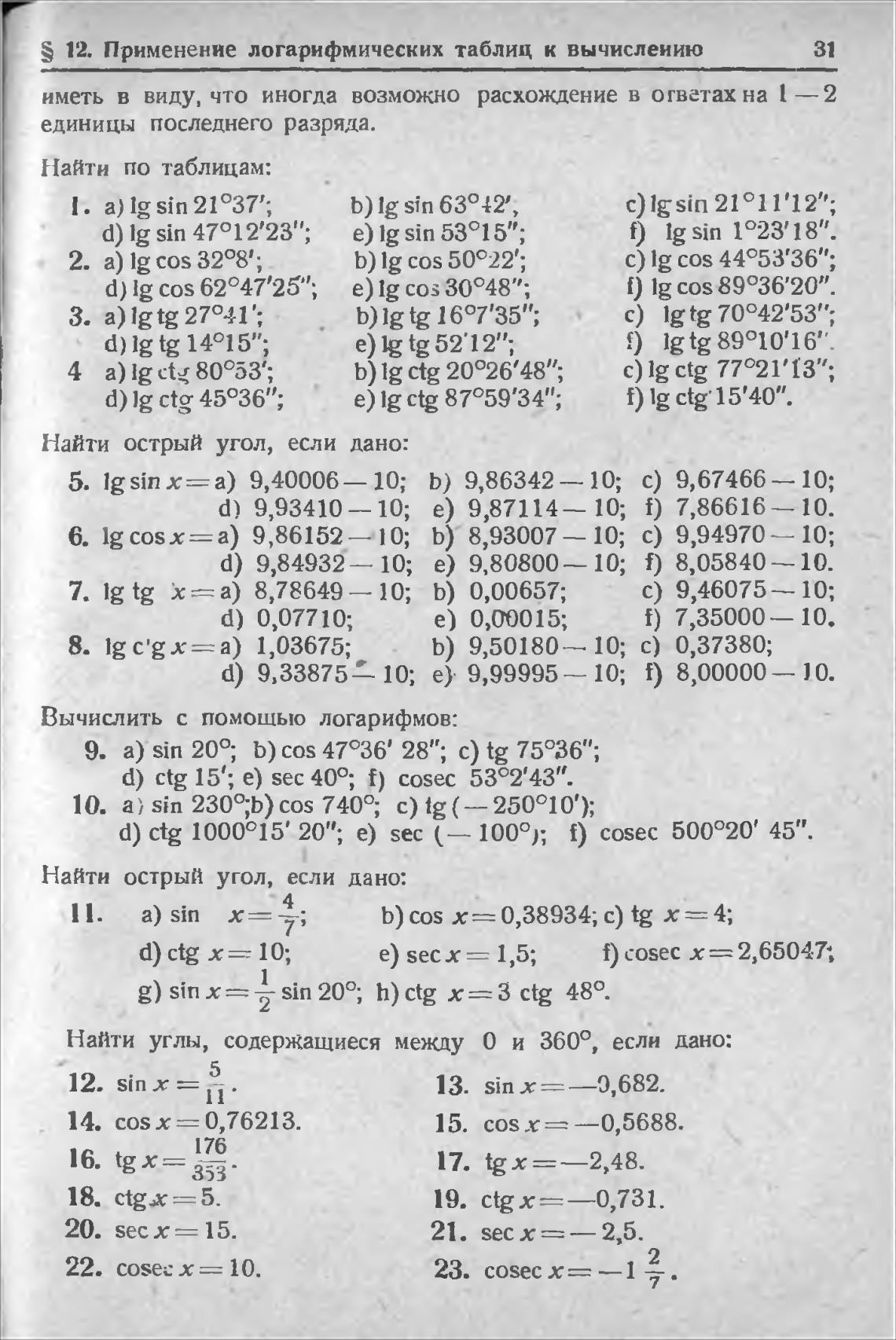 S 12. Применение логарифмических таблиц к вычислению