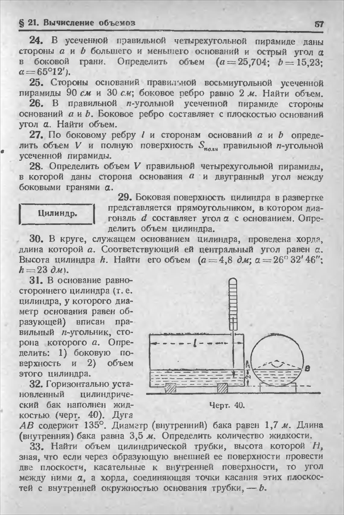 Высота цилиндра h. Найти его объем (а дм; а = 260 32' 46”;