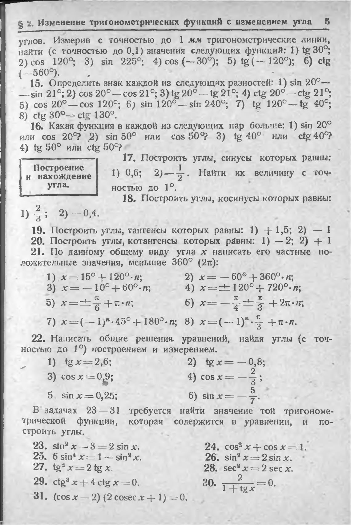 S Е. Измененне тригонометрических функций с нзменеиием угла 5