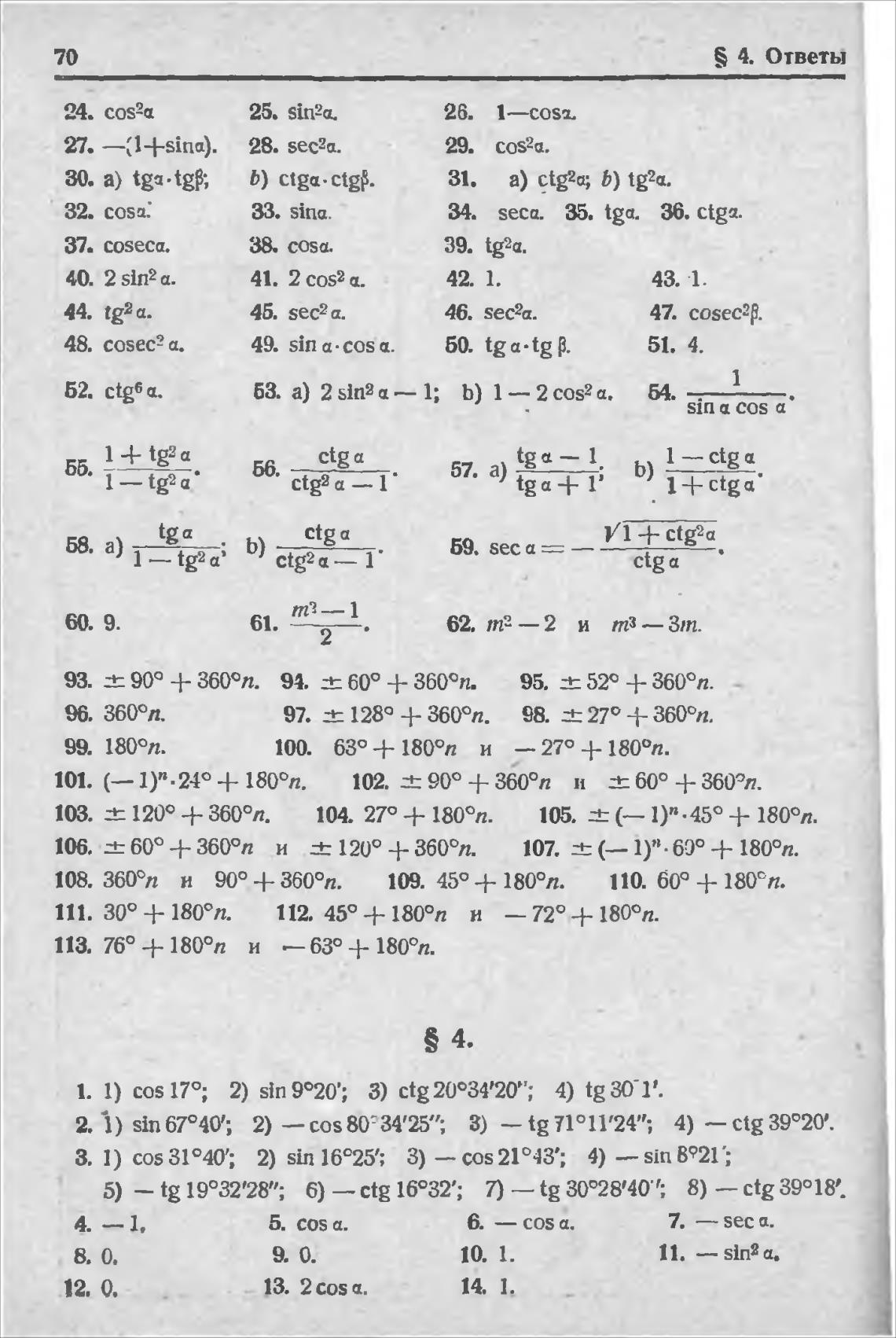 1. 1) 170; 2) 9020'; 3) ctg20034'20“; 4) tg301'.