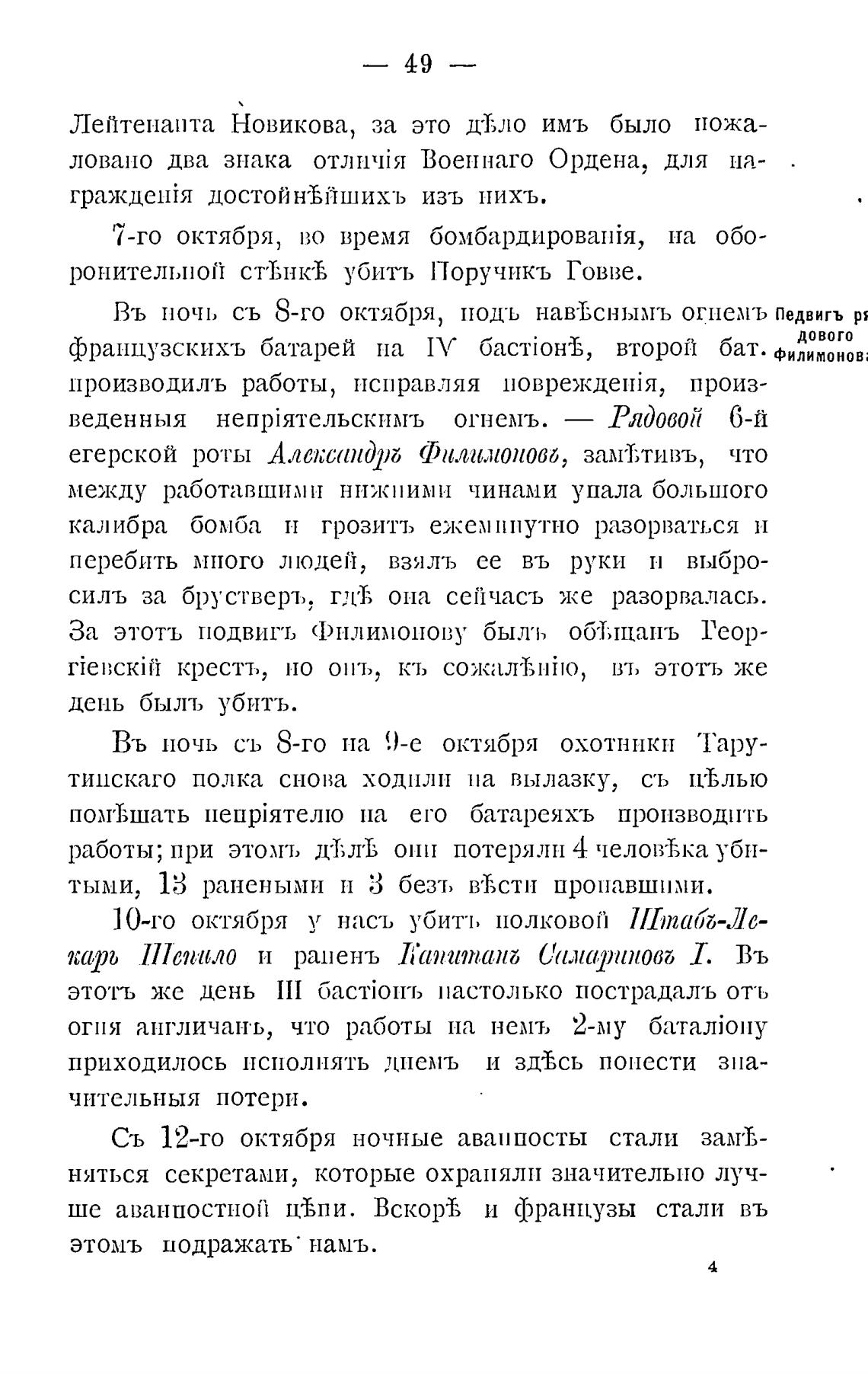 французскихъ батарей па IV 6acTi0Hb, второй бат. Филимонов;